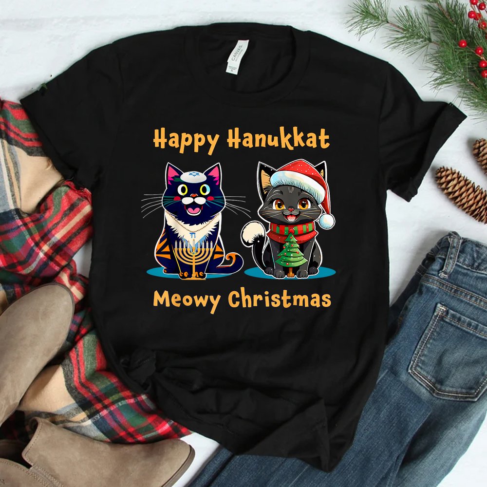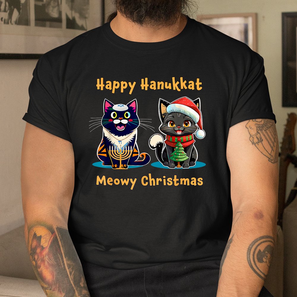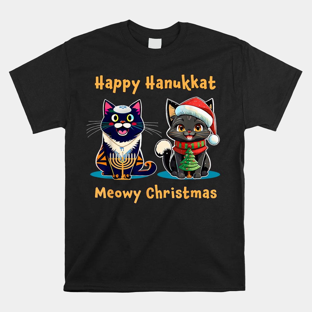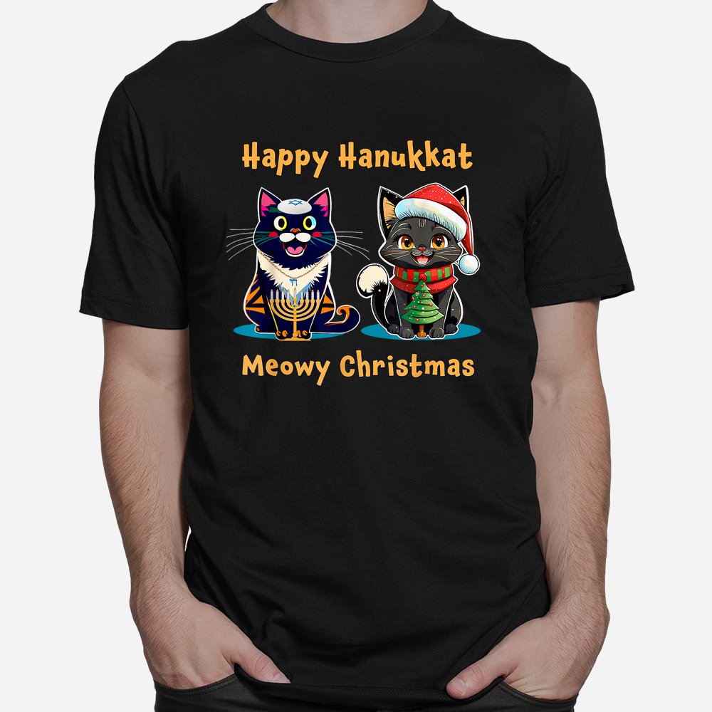Merry Christmas Happy Hanukkah Jewish Christian Cat Shirt, hoodie, sweatshirt, long sleeve and ladies T-shirt