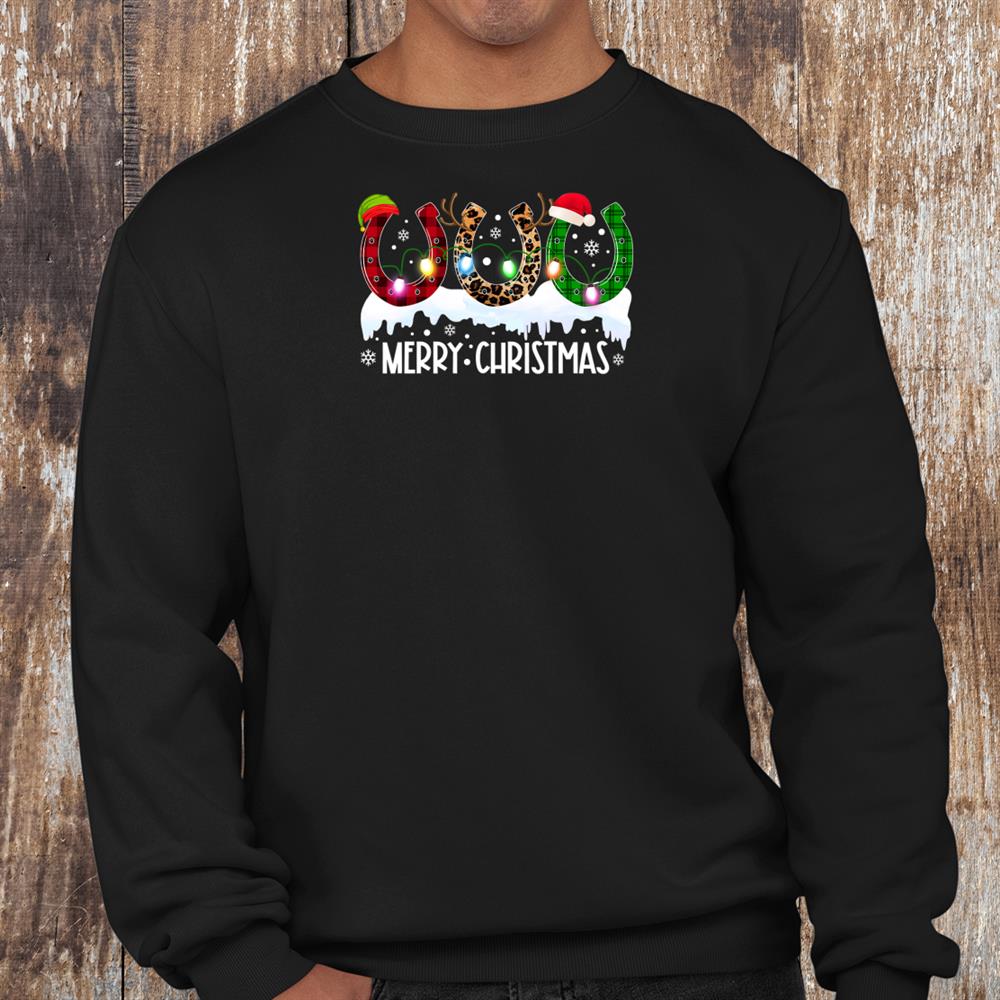 Merry Christmas Horseshoes Horse Lover Funny Horse Riding Shirt, hoodie, sweatshirt, long sleeve and ladies T-shirt