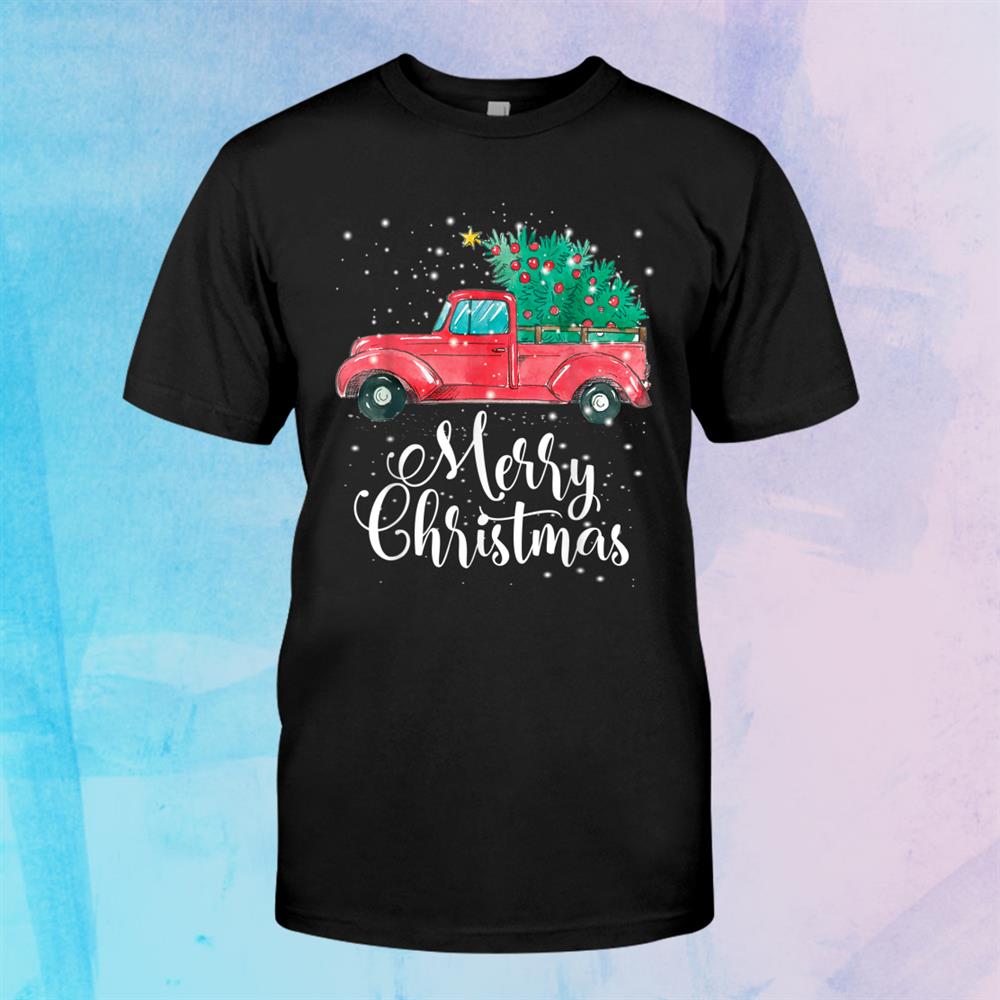 Merry Christmas Red Truck Pick Up Tree Family Pajama Shirt, hoodie, sweatshirt, long sleeve and ladies T-shirt