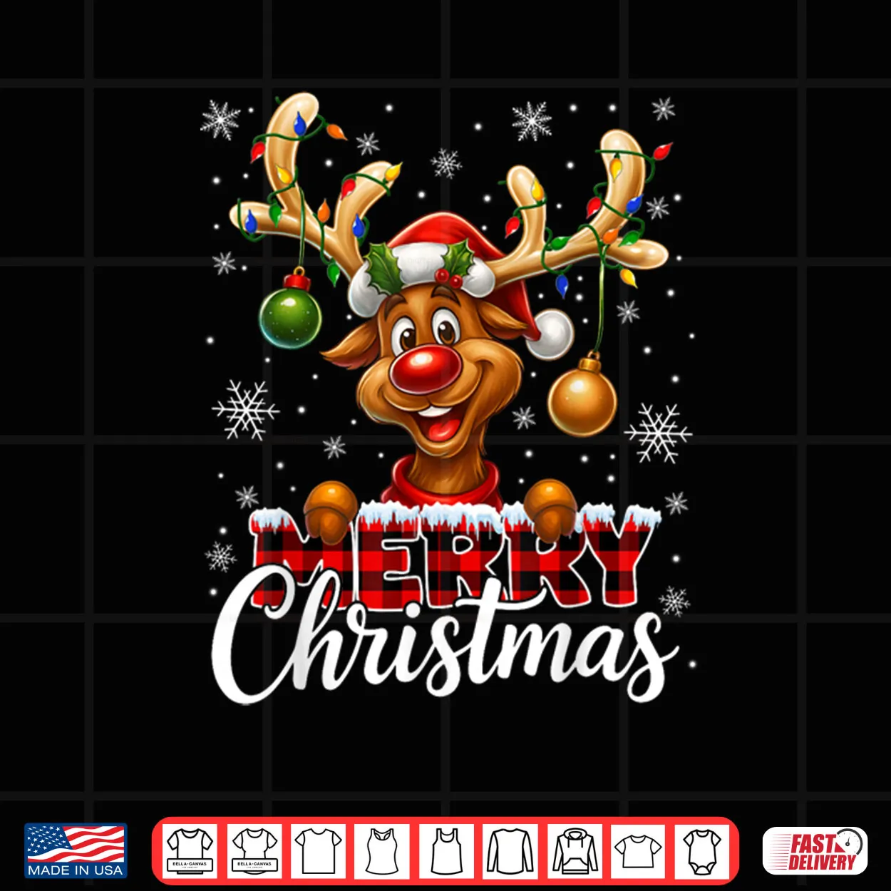 Merry Christmas Reindeer Plaid Pajamas Xmas Shirt
