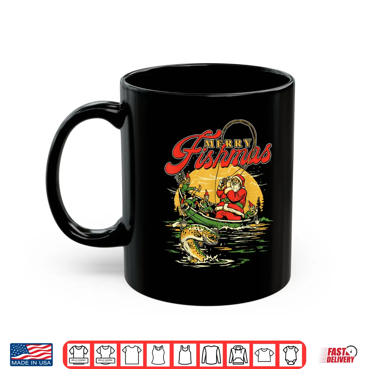 Merry Fishmas Santa Fishing Funny Christmas Holiday Tee Shirt
