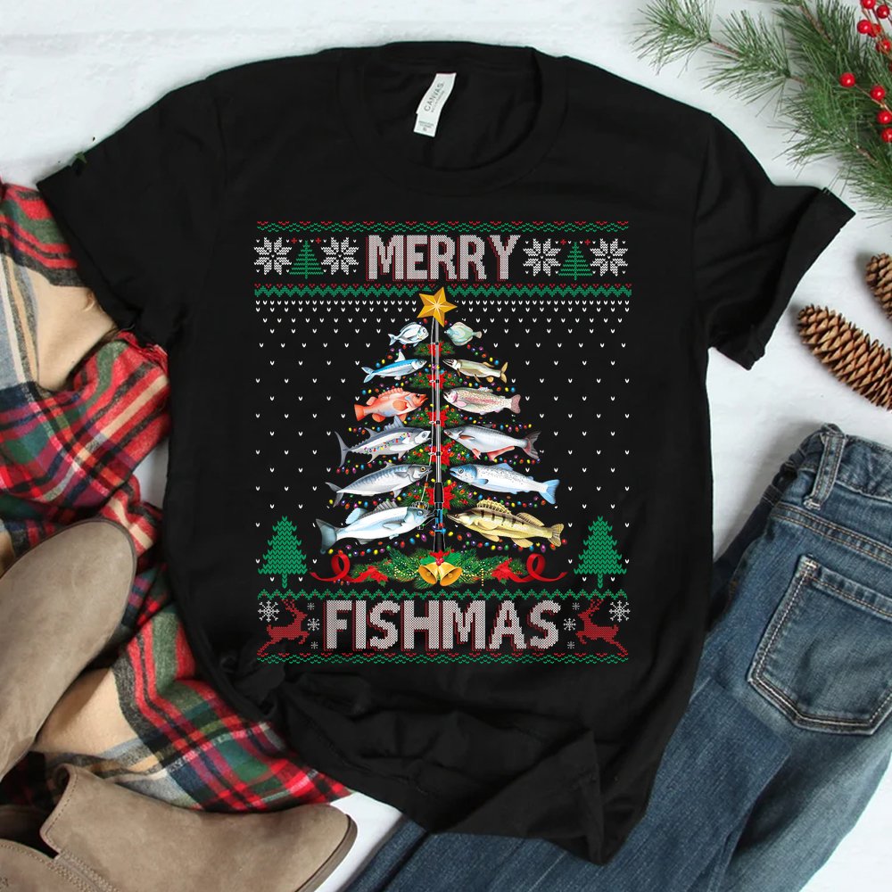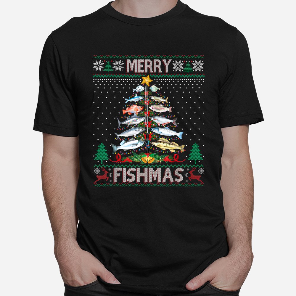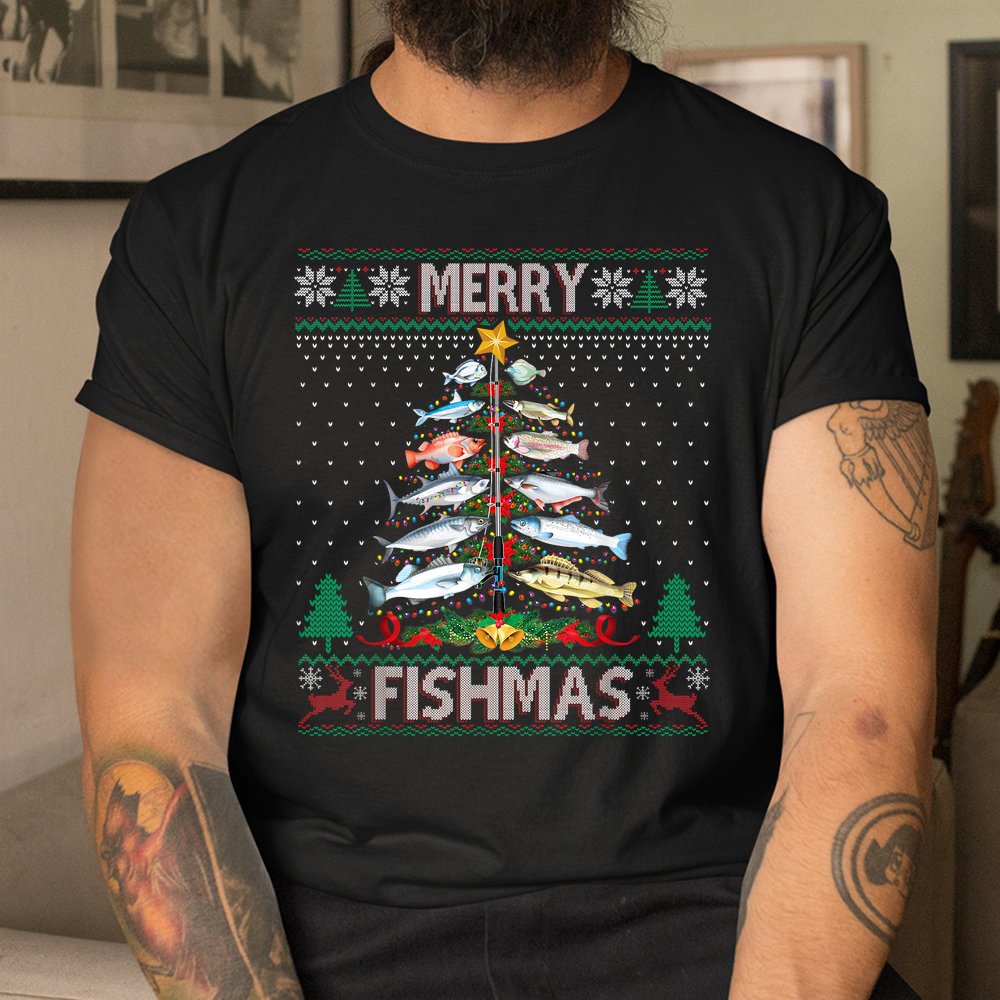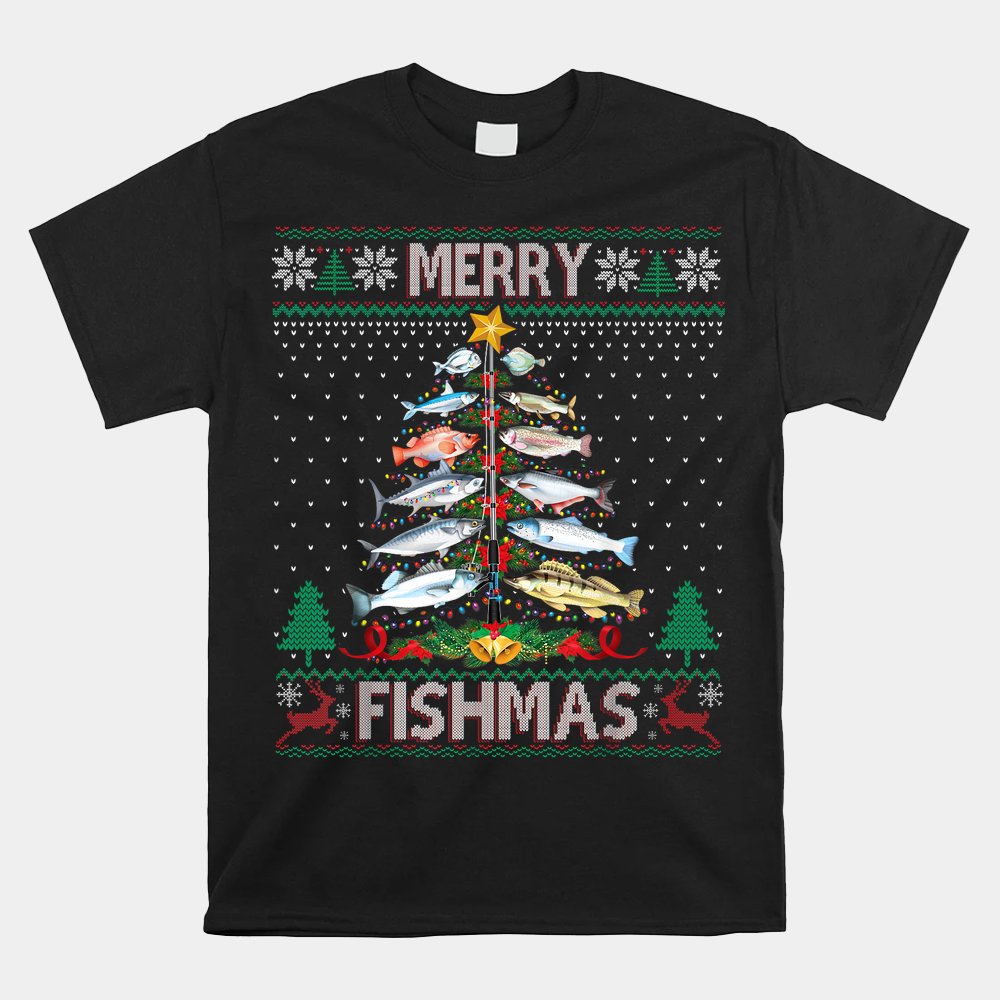 Merry Fishmas Ugly Sweater Fish Fishing Rod Christmas Tree Shirt