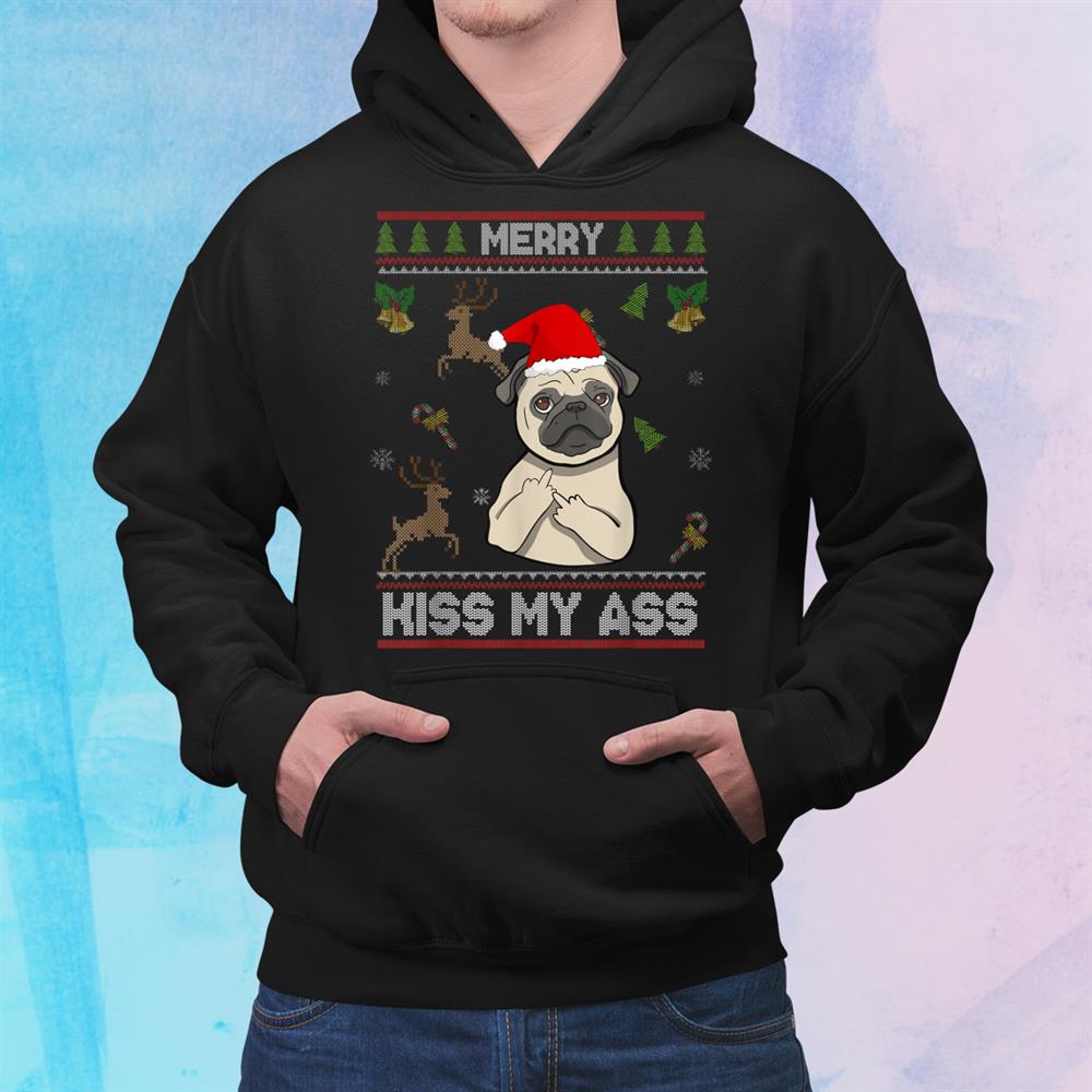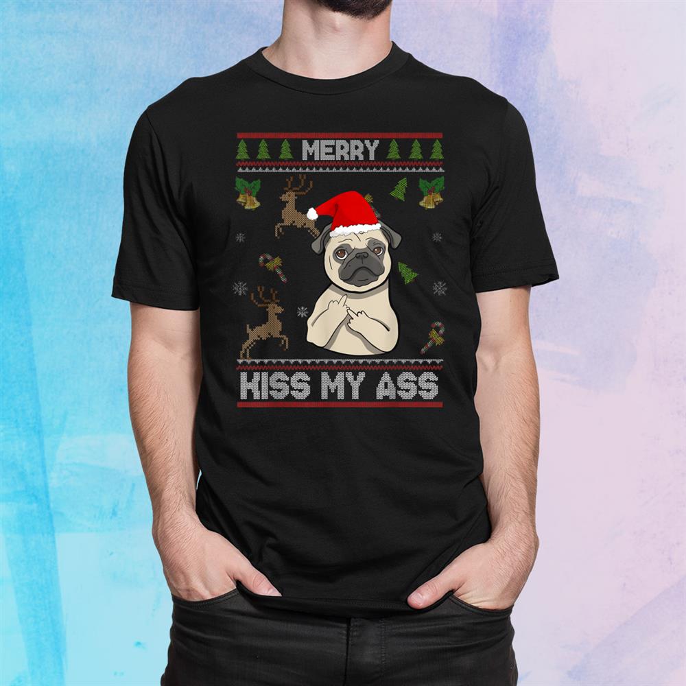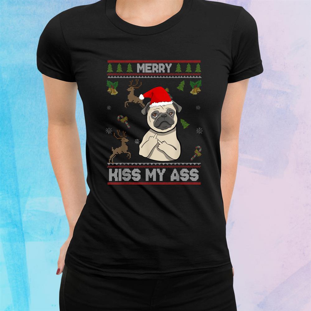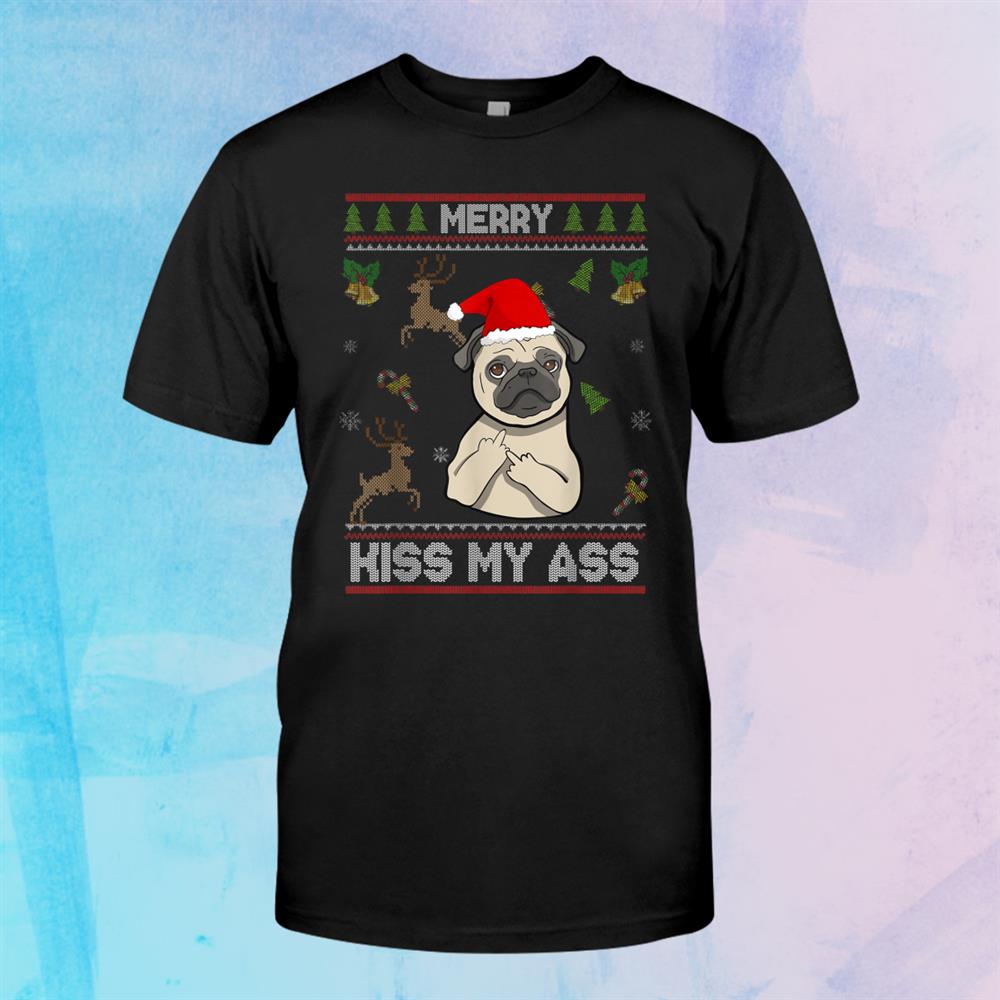 Merry Kiss My Ass Funny Santa Pug Dog Sweater Christmas Shirt, hoodie, sweatshirt, long sleeve and ladies T-shirt