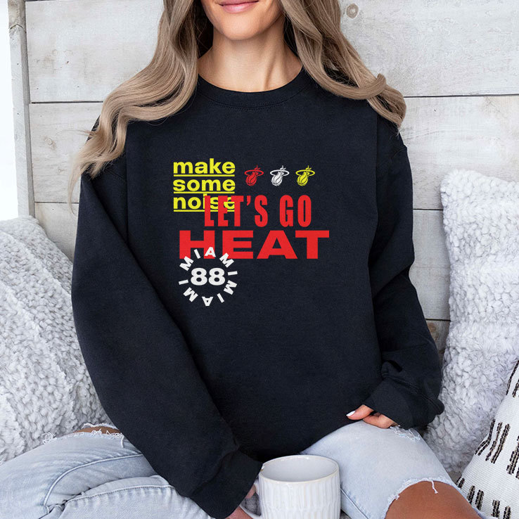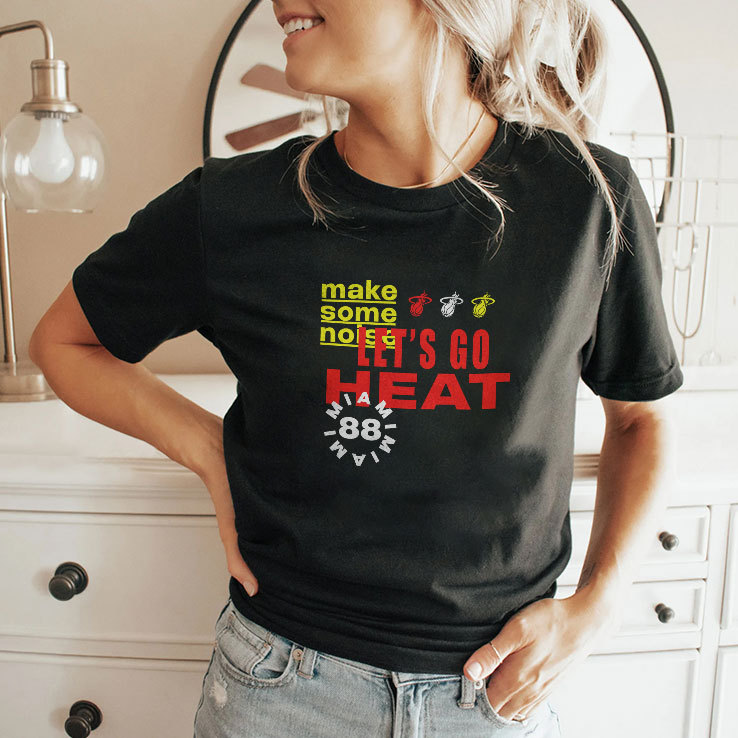 Have a look at the detailed information about Miami Heat Let’s Go Heat Make Some Noise Shirt below!