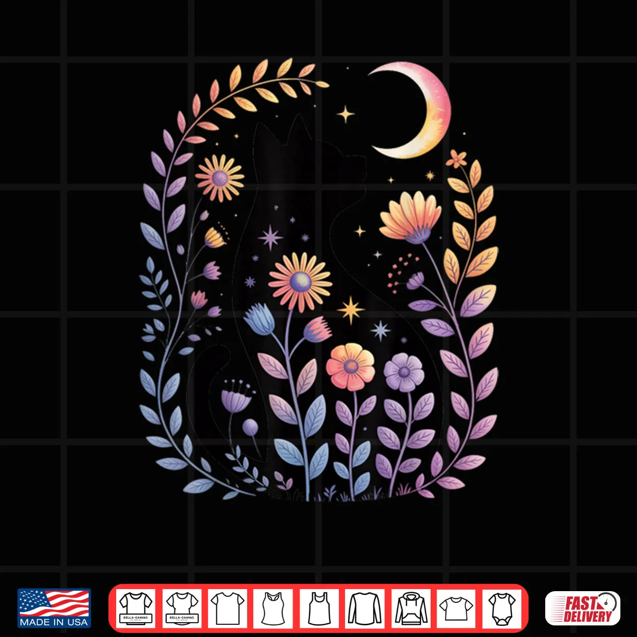Midnight Cat and Crescent Enchanted Lunar Garden Scene Shirt