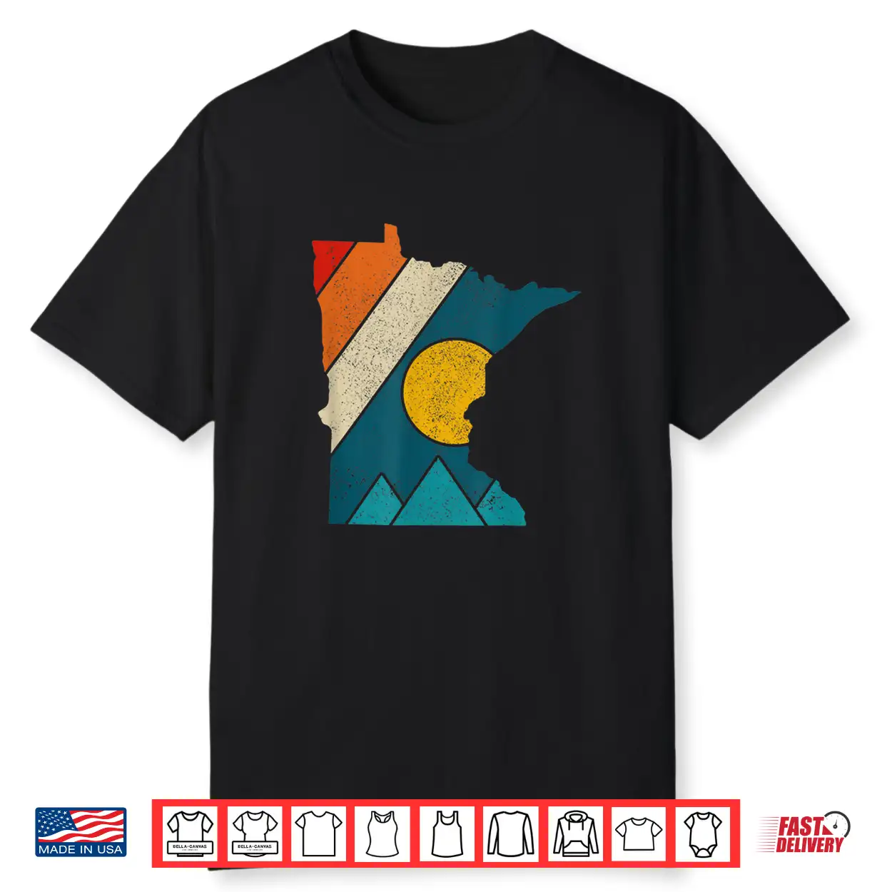 Minnesota Vintage State Map Mountains Hiking Pride Gift Shirt