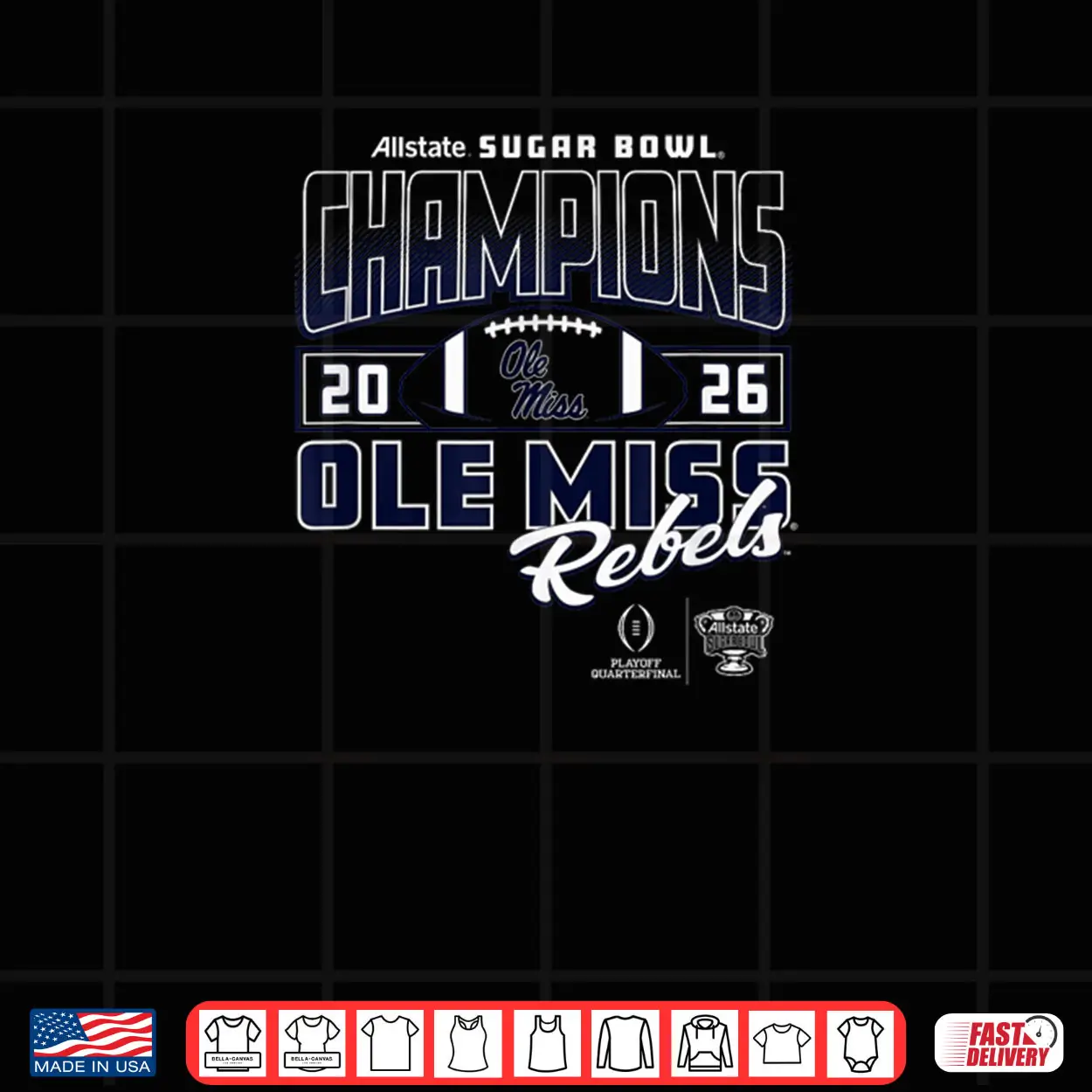 mississippi ole miss rebels, sugar bowl champs 2026, cfp red, victory, college football, postseason, champions, mississippi, fan gear, shirt