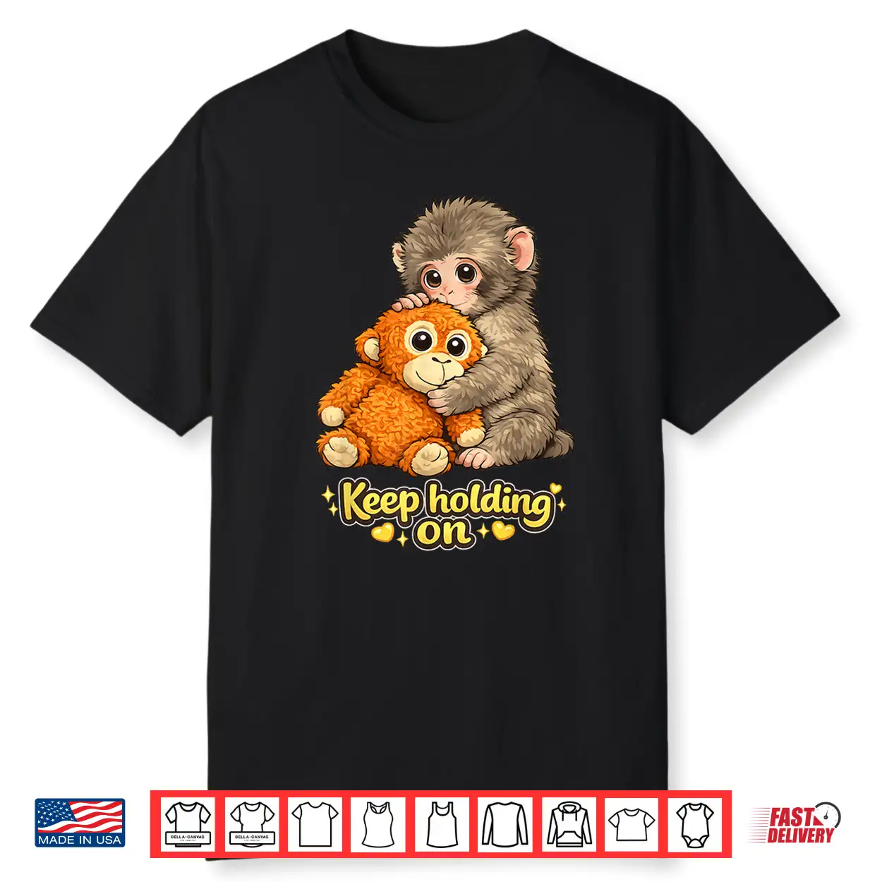 Monkey With Teddy Bear Cuddling Meme Viral Graphic Shirt