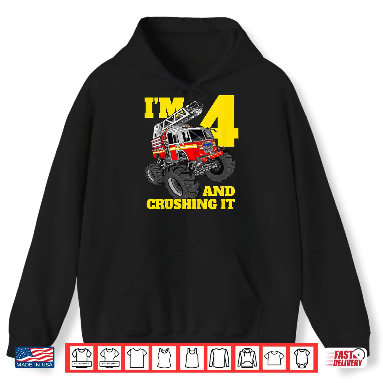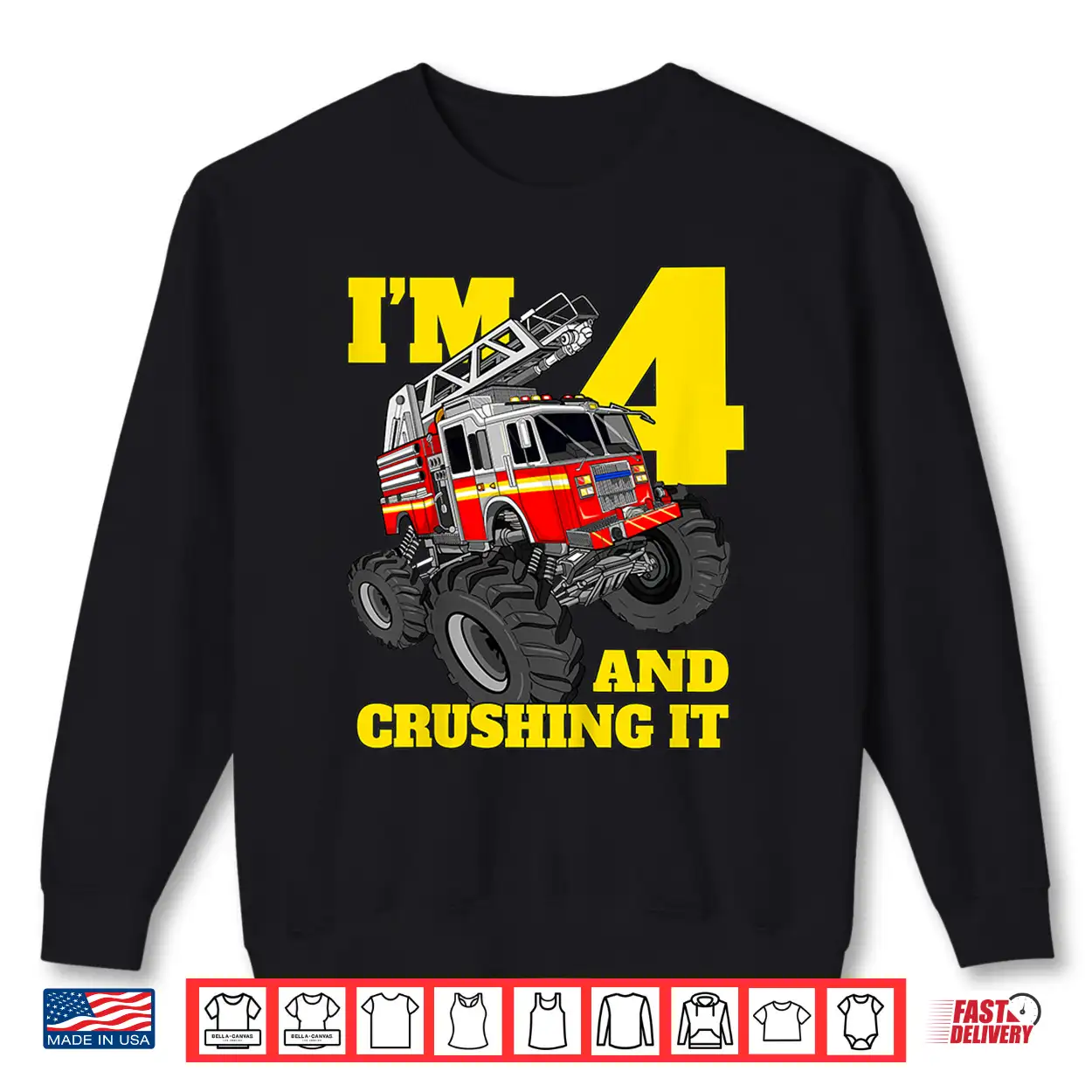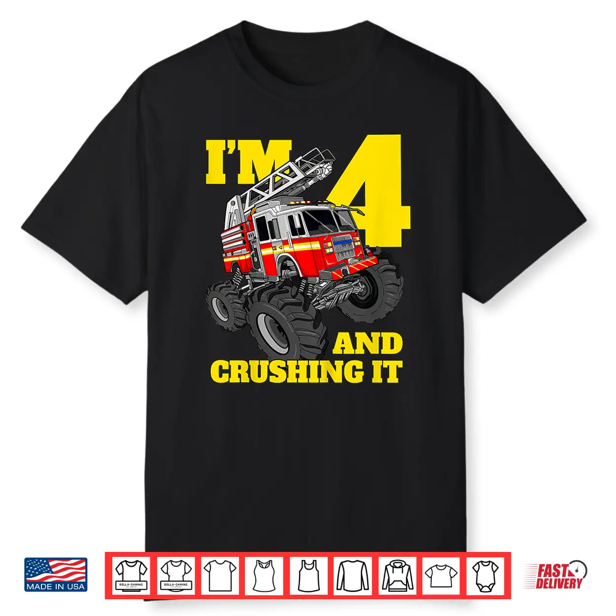 Monster Fire Truck 4Th Shirt Birthday 4 Firefighter Gift Shirt