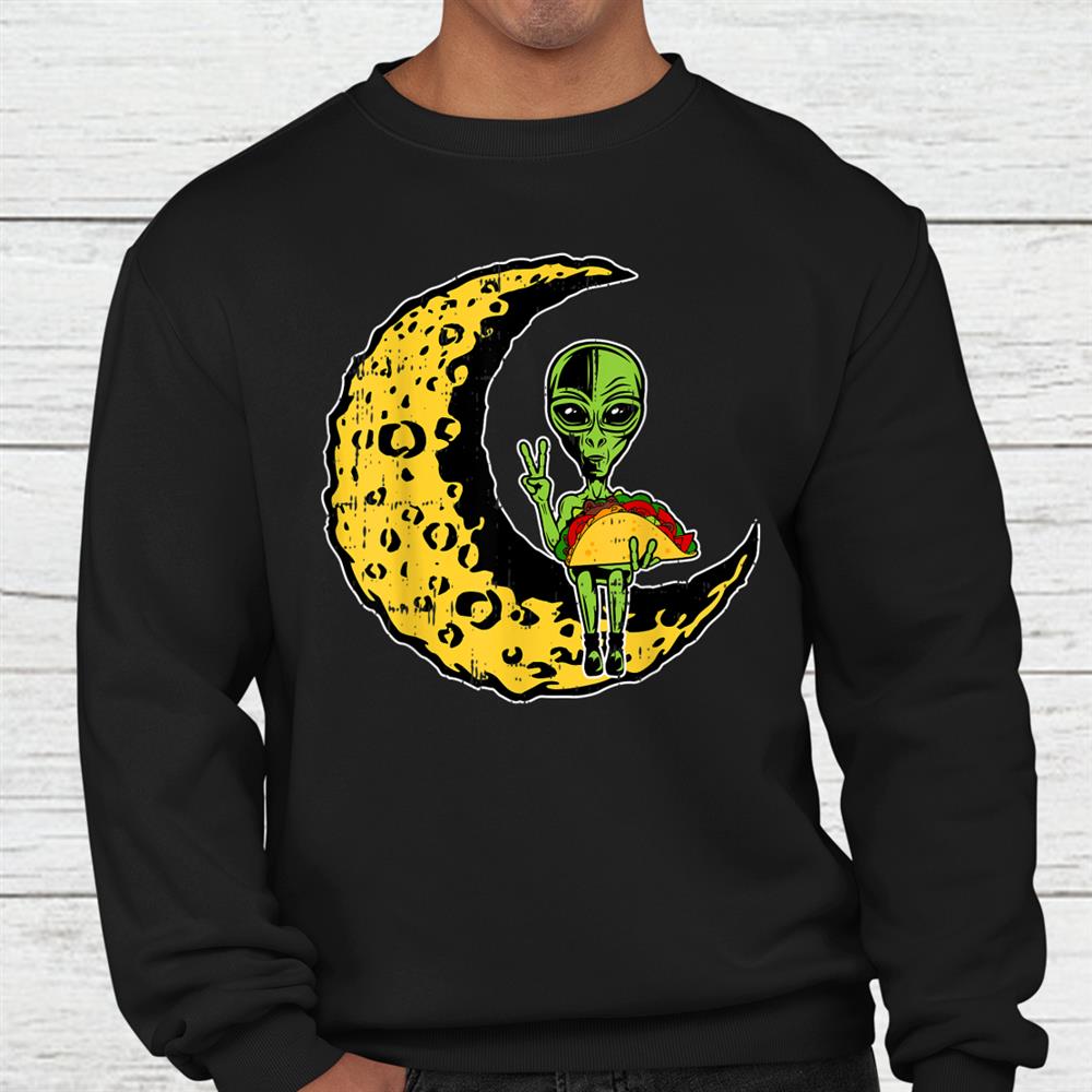 Moon Alien Eating Taco Peace Costume Funny Halloween Shirt, hoodie, sweatshirt, long sleeve and ladies T-shirt