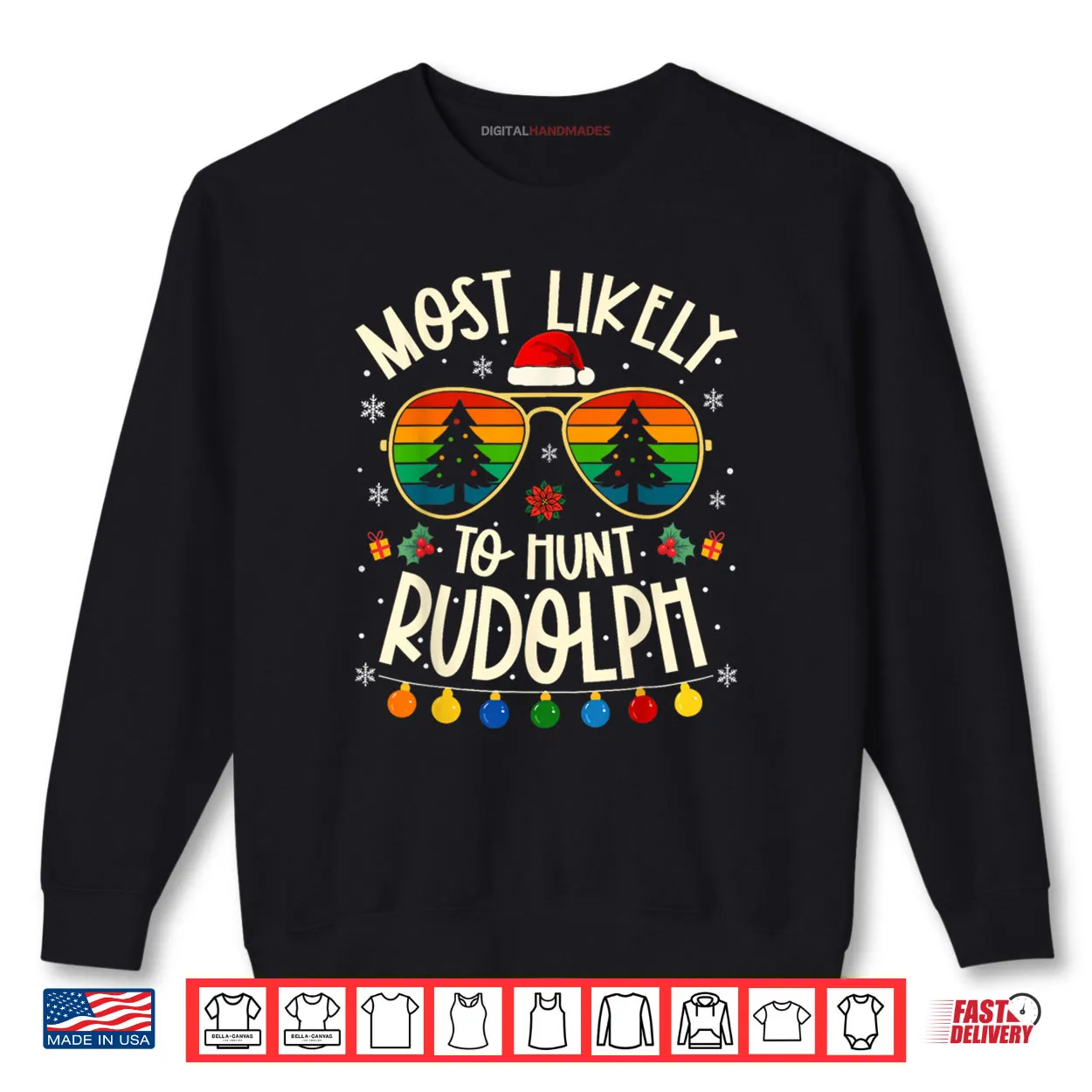 Most Likely to Hunt Rudolph Funny Matching Xmas Shirt