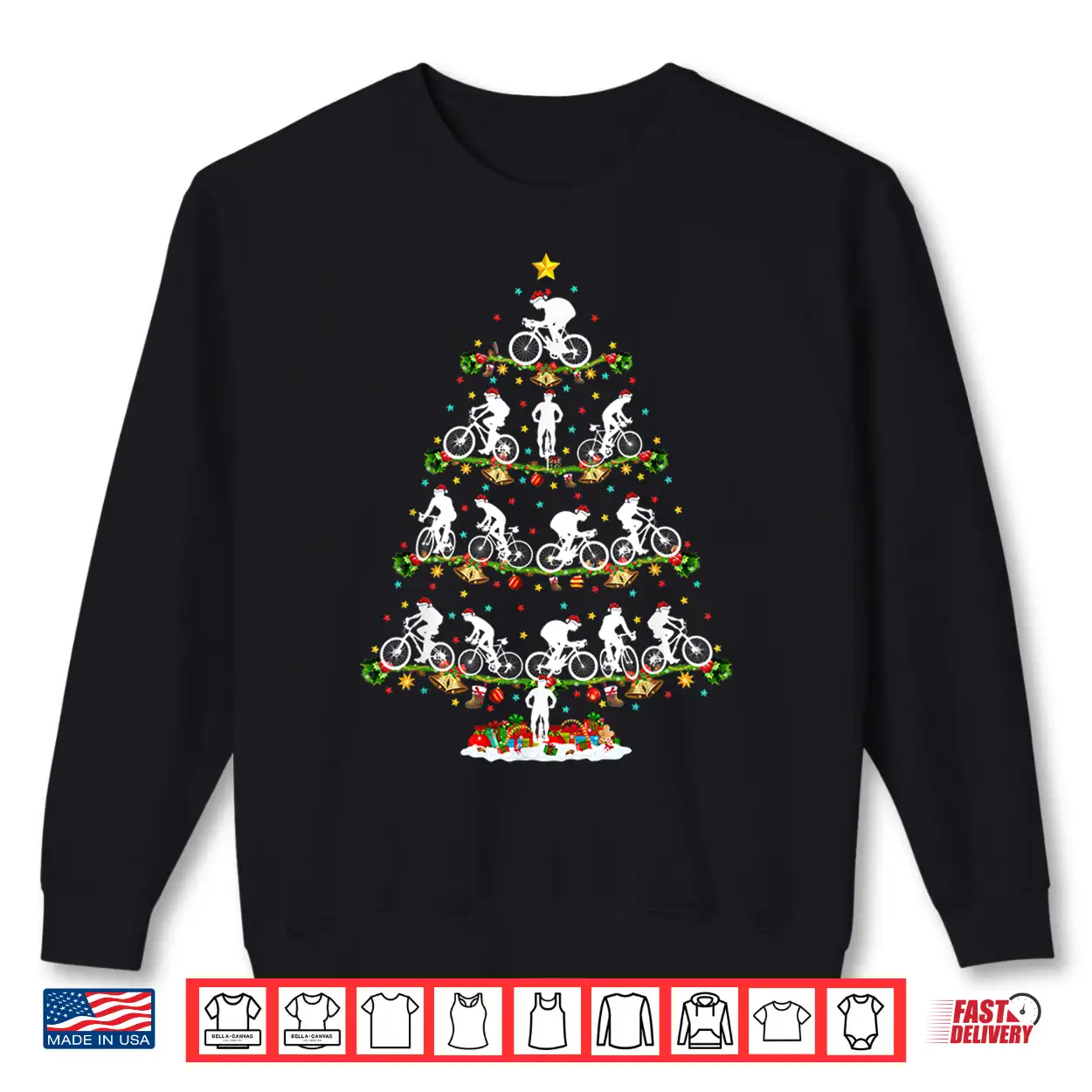 Mtb Bike Xmas Lighting Santa Mountain Biking Christmas Tree Shirt