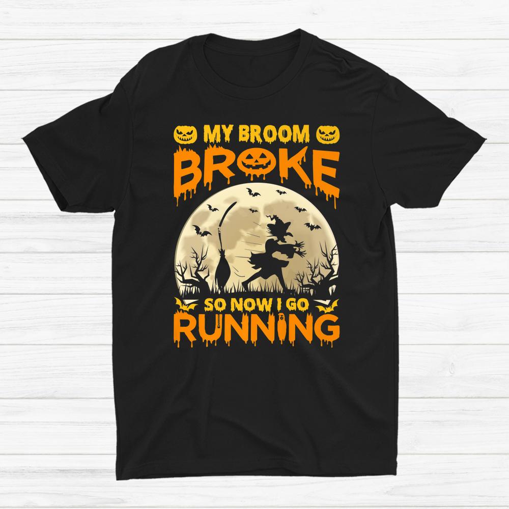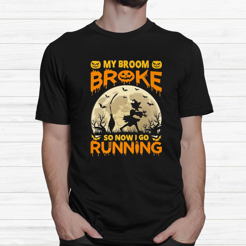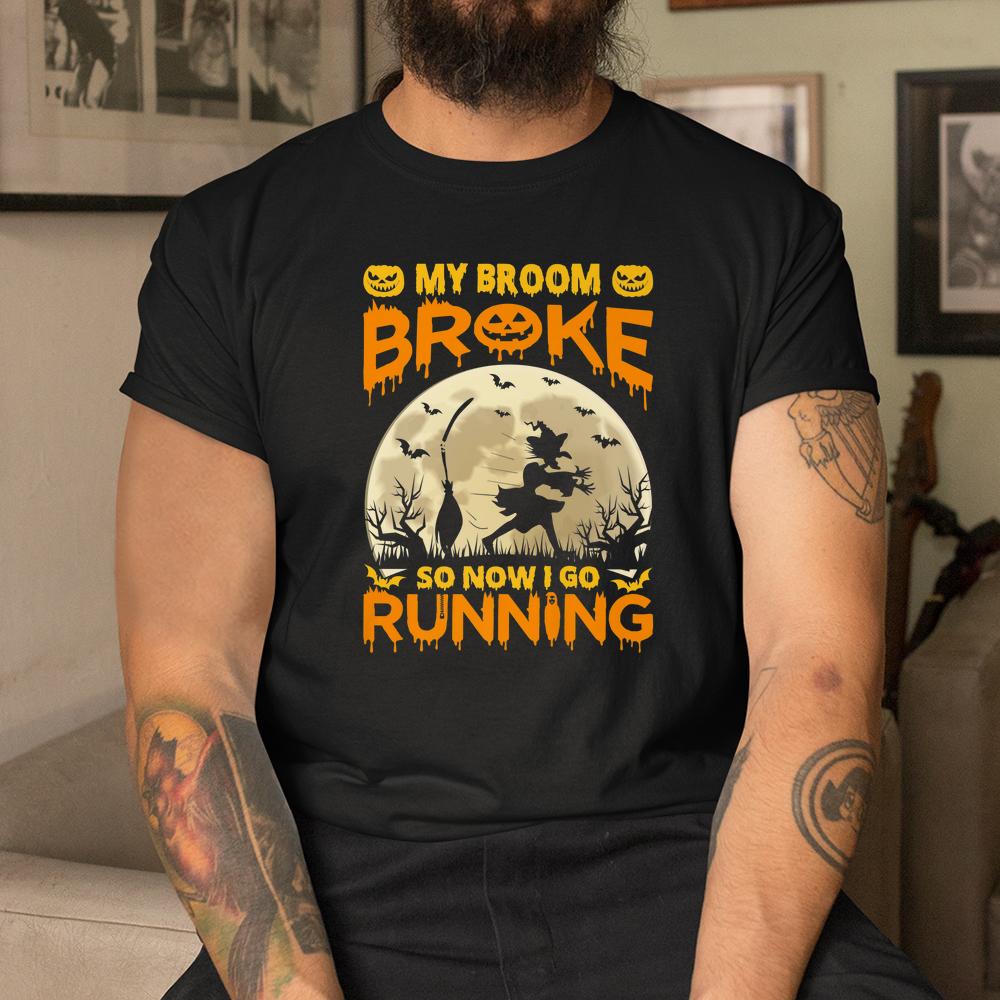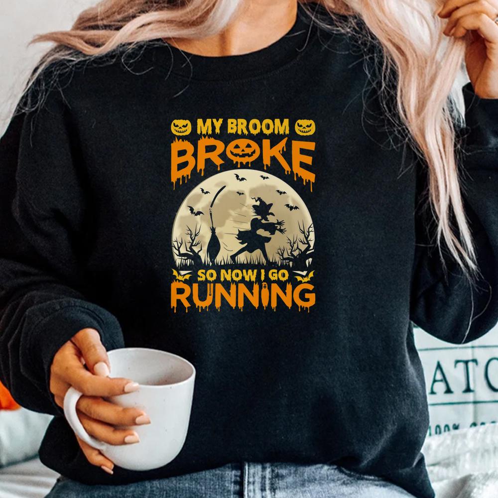 My Broom Broke So Now I Go Running Halloween Shirt, hoodie, sweatshirt, long sleeve and ladies T-shirt
