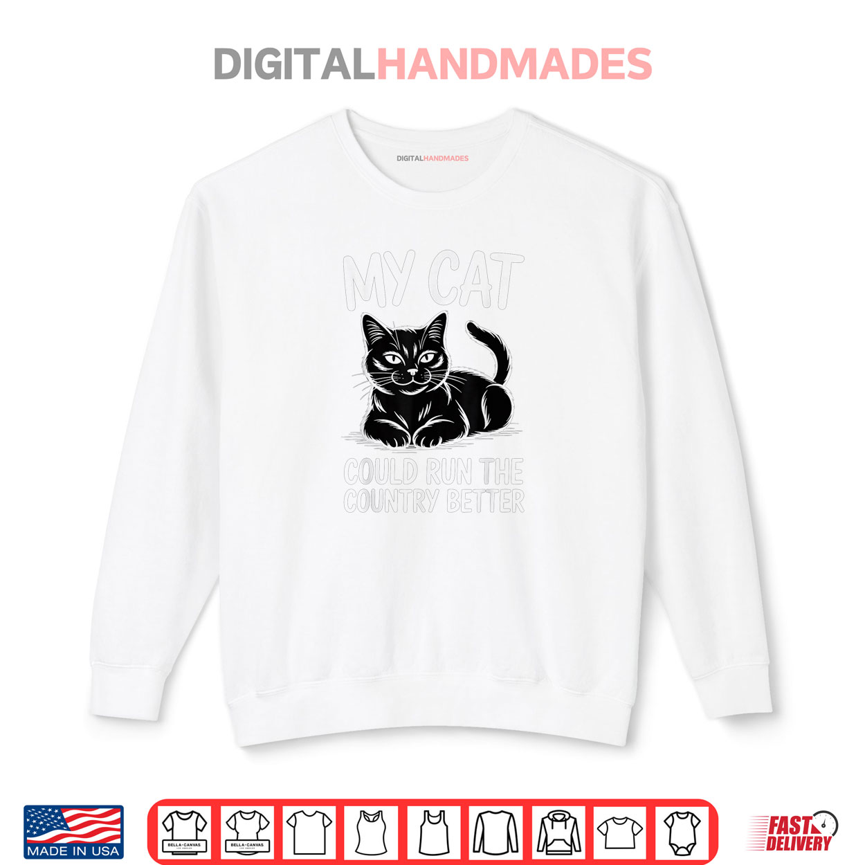 my cat run country better quote, funny cat graphic tee, spring quirky apparel, funny quote humor shirt, bold country design, playful casual spring fashion, lighthearted pet tee, springtime whimsical style, humorous better shirt, cute animal apparel
