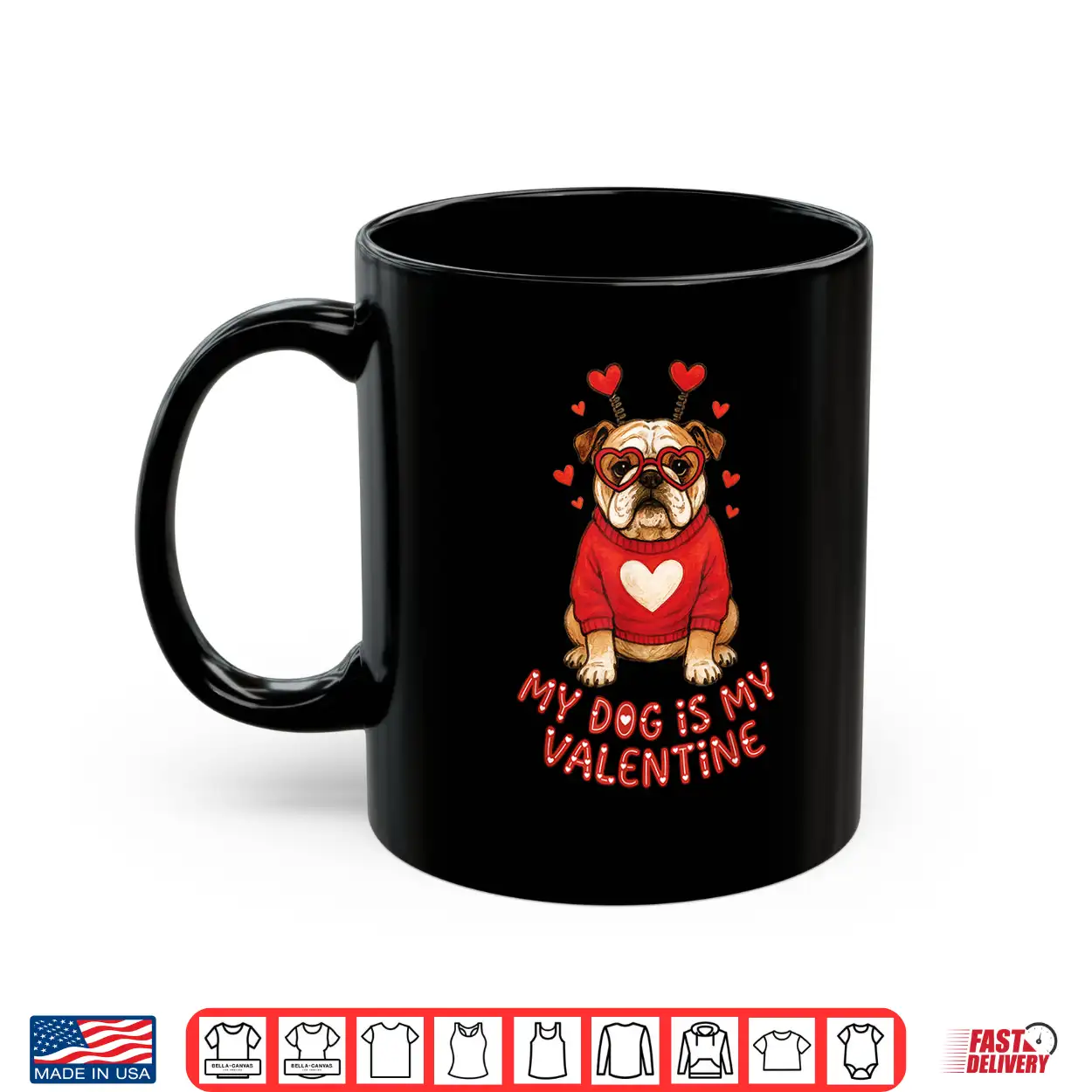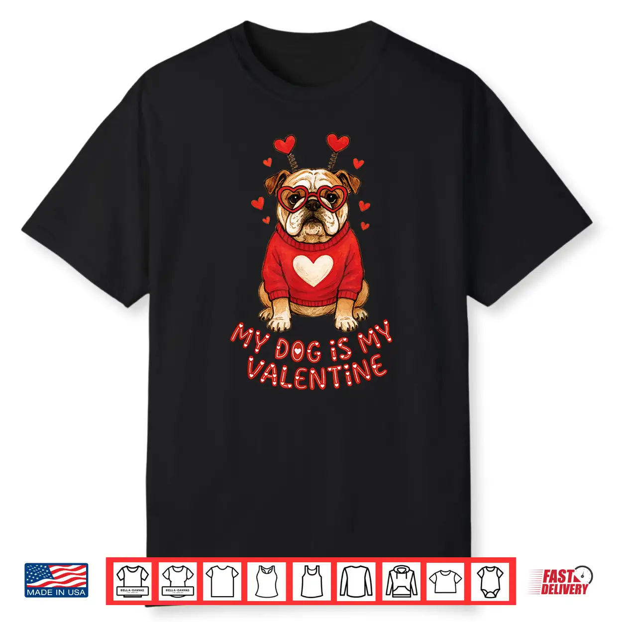 My Dog Is My Valentine English Bulldog Heart Glasses Cute Shirt