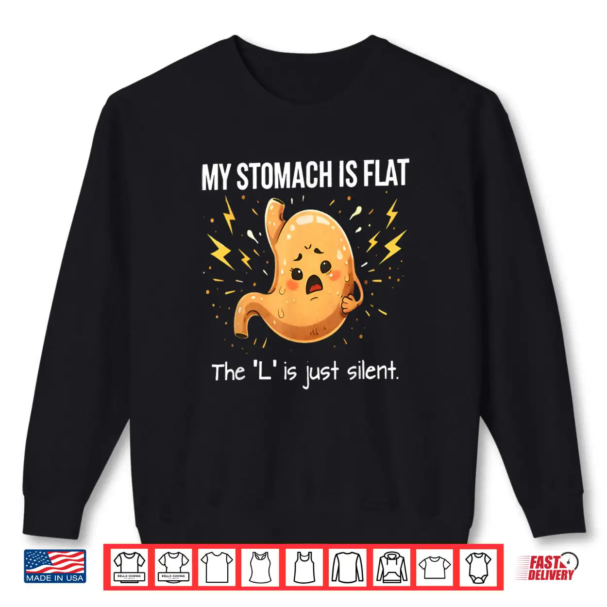 My Stomach is Flat The L is Just Silent Funny Saying Quote Shirt