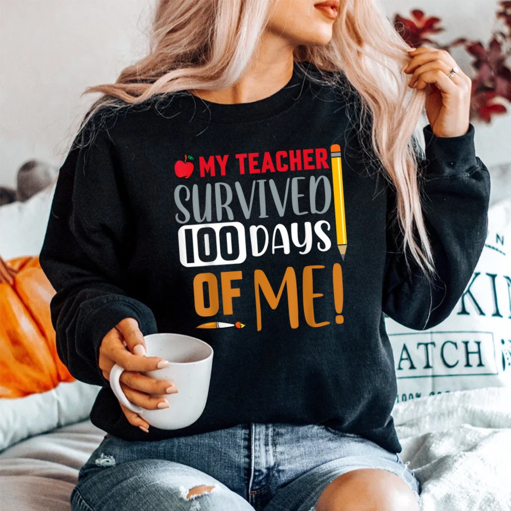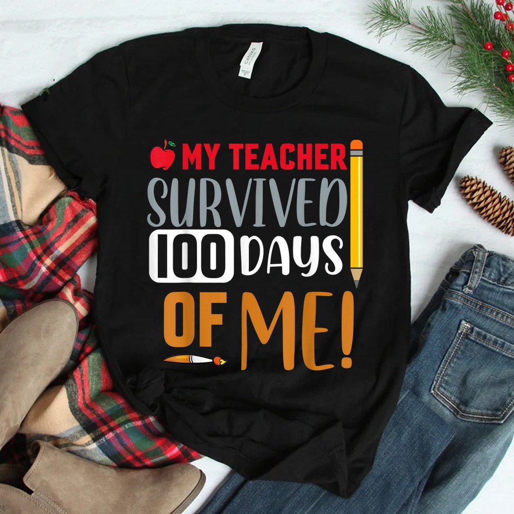 My Teacher Survived 100 Days Of Me Funny 100th Day Of School Shirt