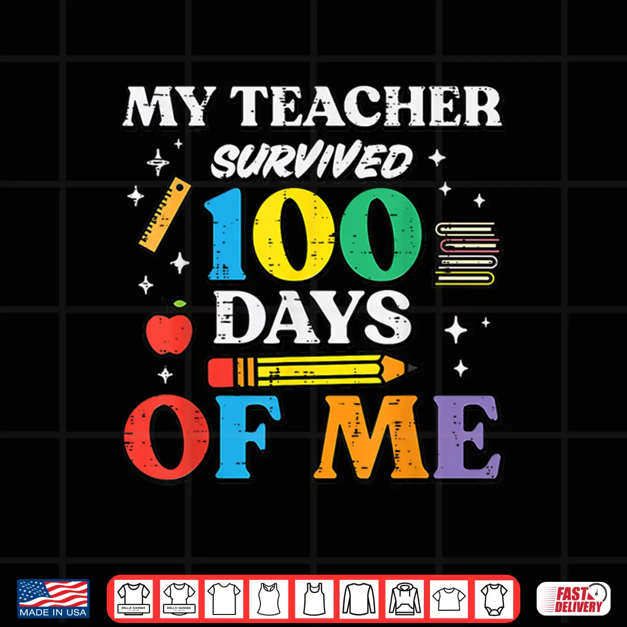 My Teacher Survived 100 Days Of School Of Me 100Th Day Kids Shirt