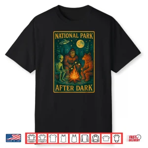 National Park After Dark Alien Bigfoot Bear Camping Shirt