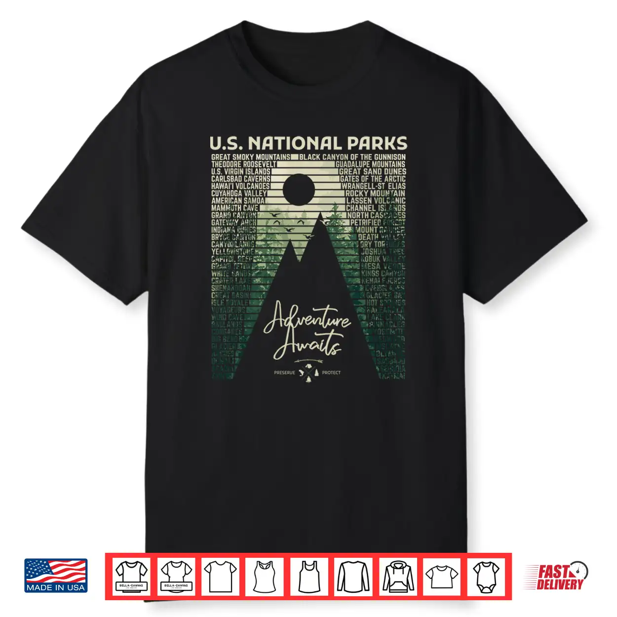 National Parks List Us Park Vintage Camping Hiking Graphic Shirt
