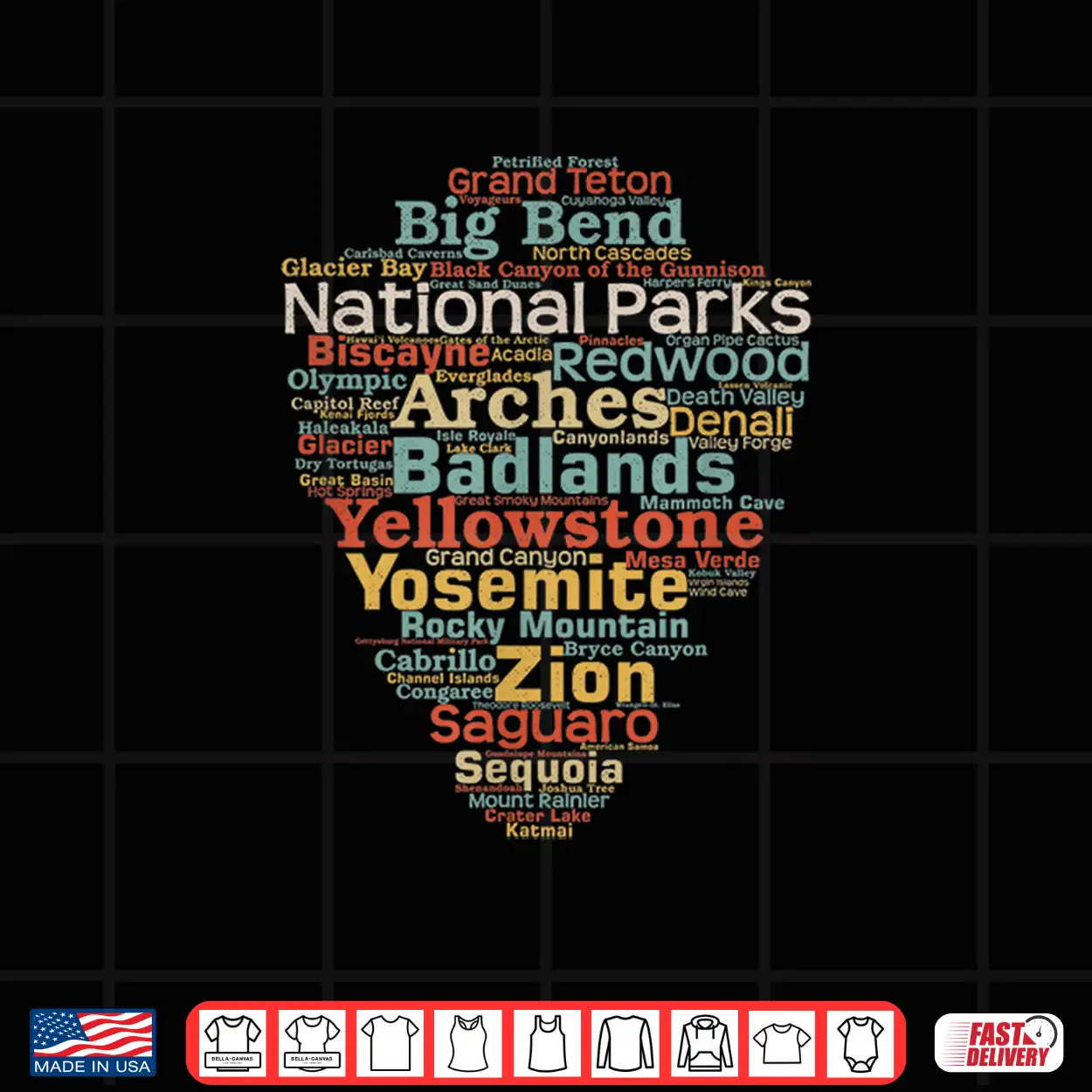 National Parks List Word Cloud Camping Hiking Graphic Shirt