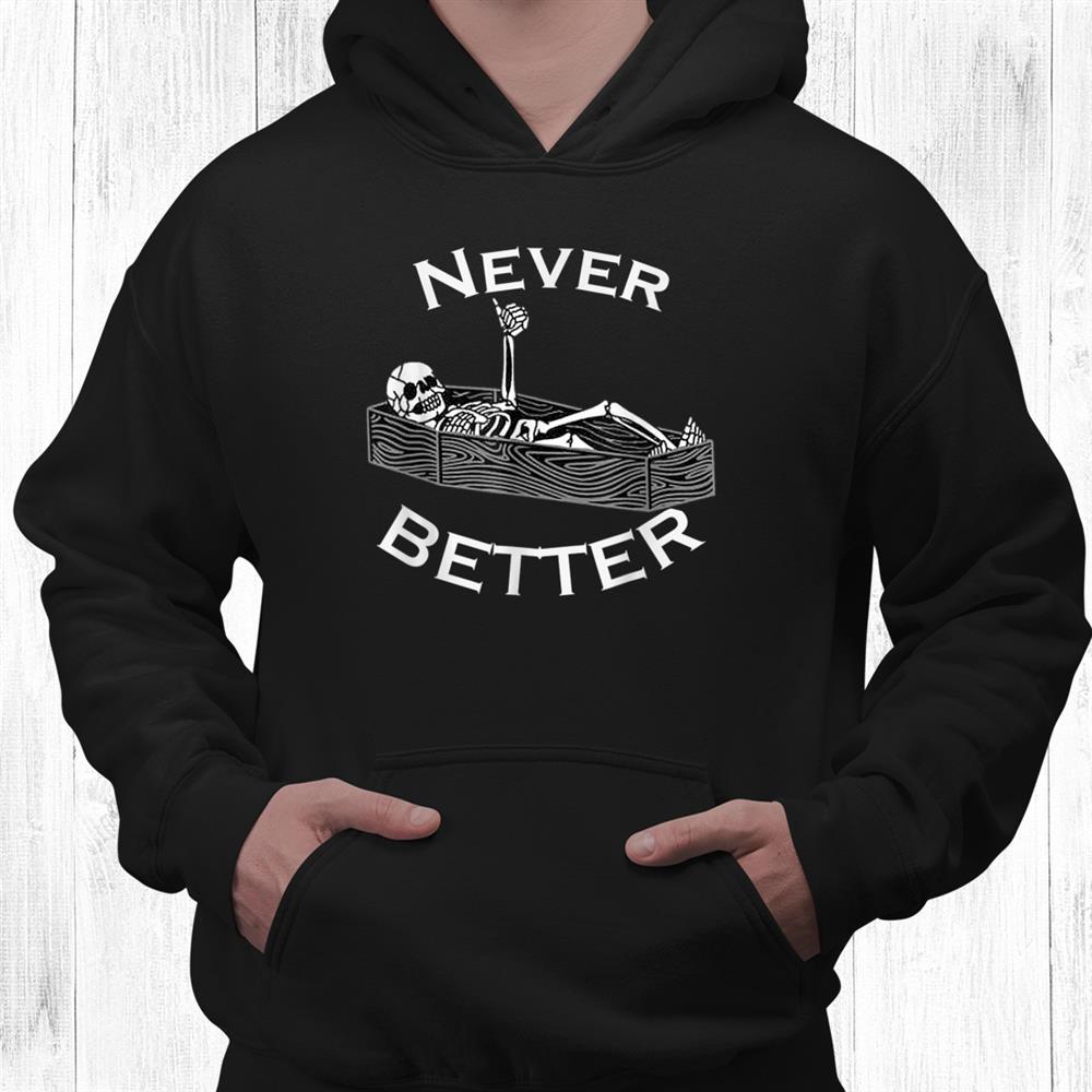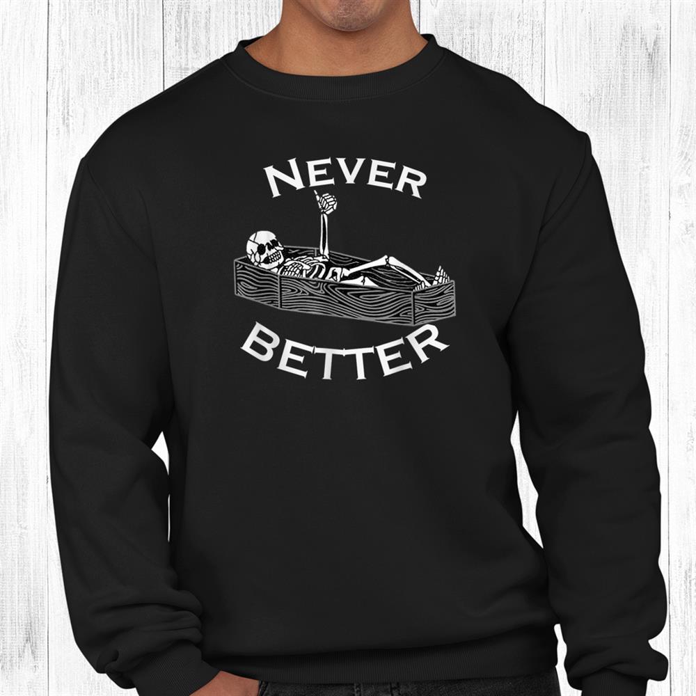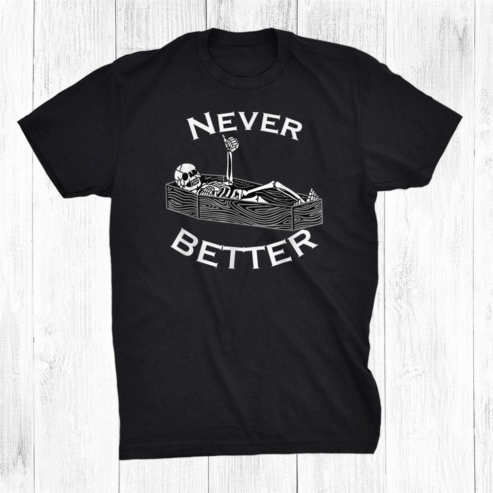 Never Better Skull Skeleton Is In The Coffin Halloween Shirt, hoodie, sweatshirt, long sleeve and ladies T-shirt