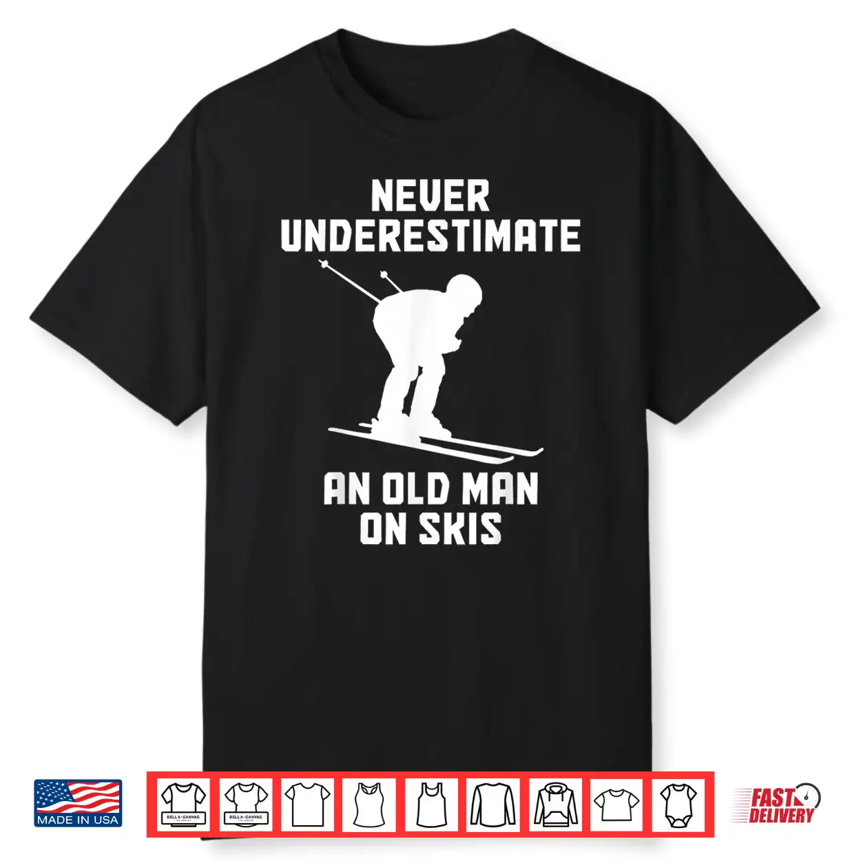 Never Underestimate An Old Man On Skis Funny Skiing Skier Shirt