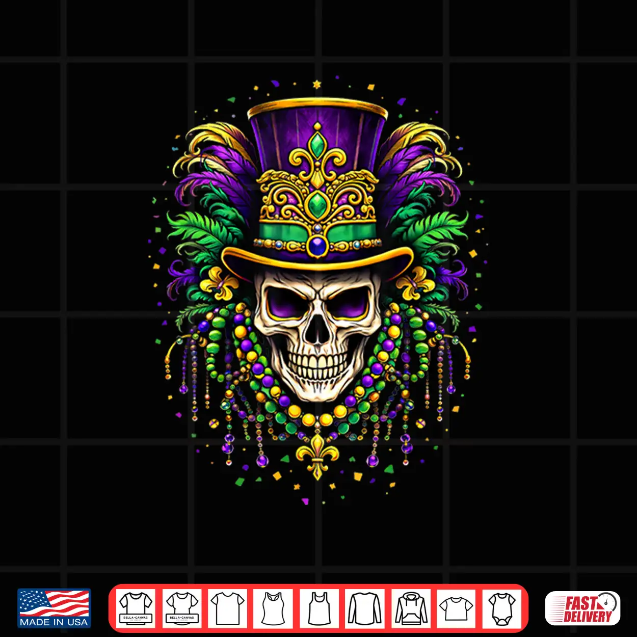 Mardi Gras Skull, shirt, Design, Carnival, NOLA, New Orleans, Jester