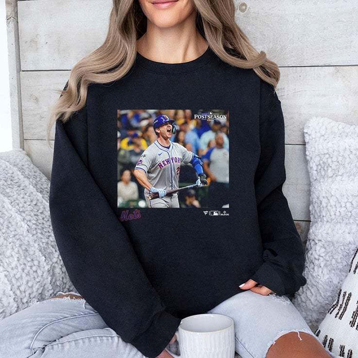 Have a look at the detailed information about the New York Mets Pete Alonso Black 2024 MLB Postseason Moments Shirt below!