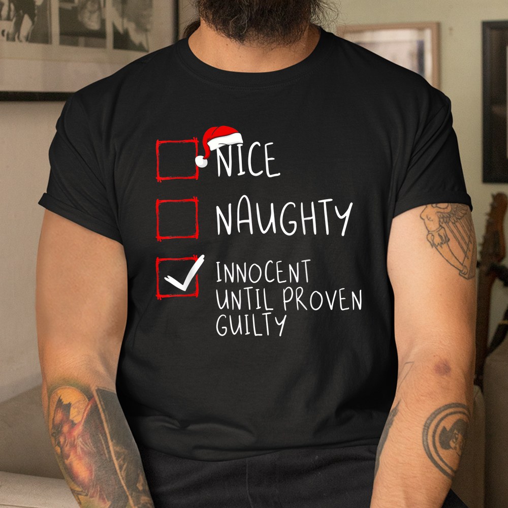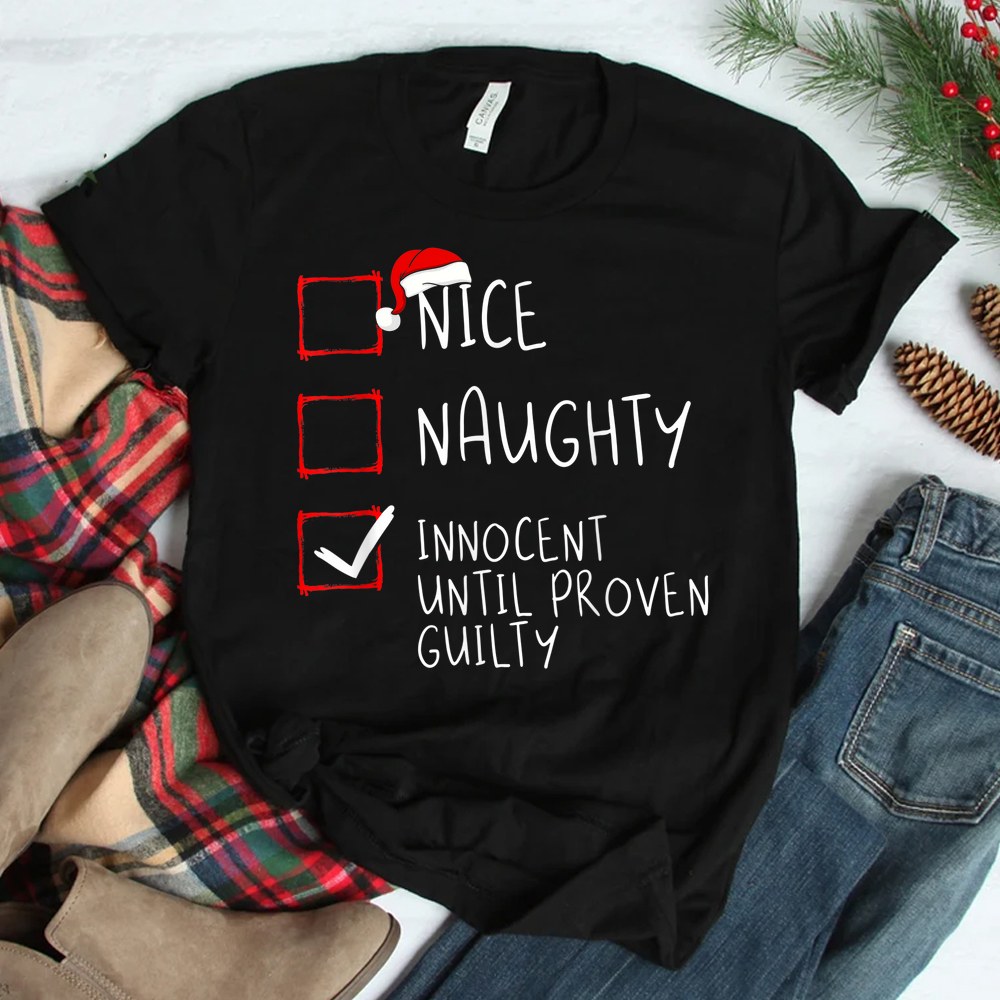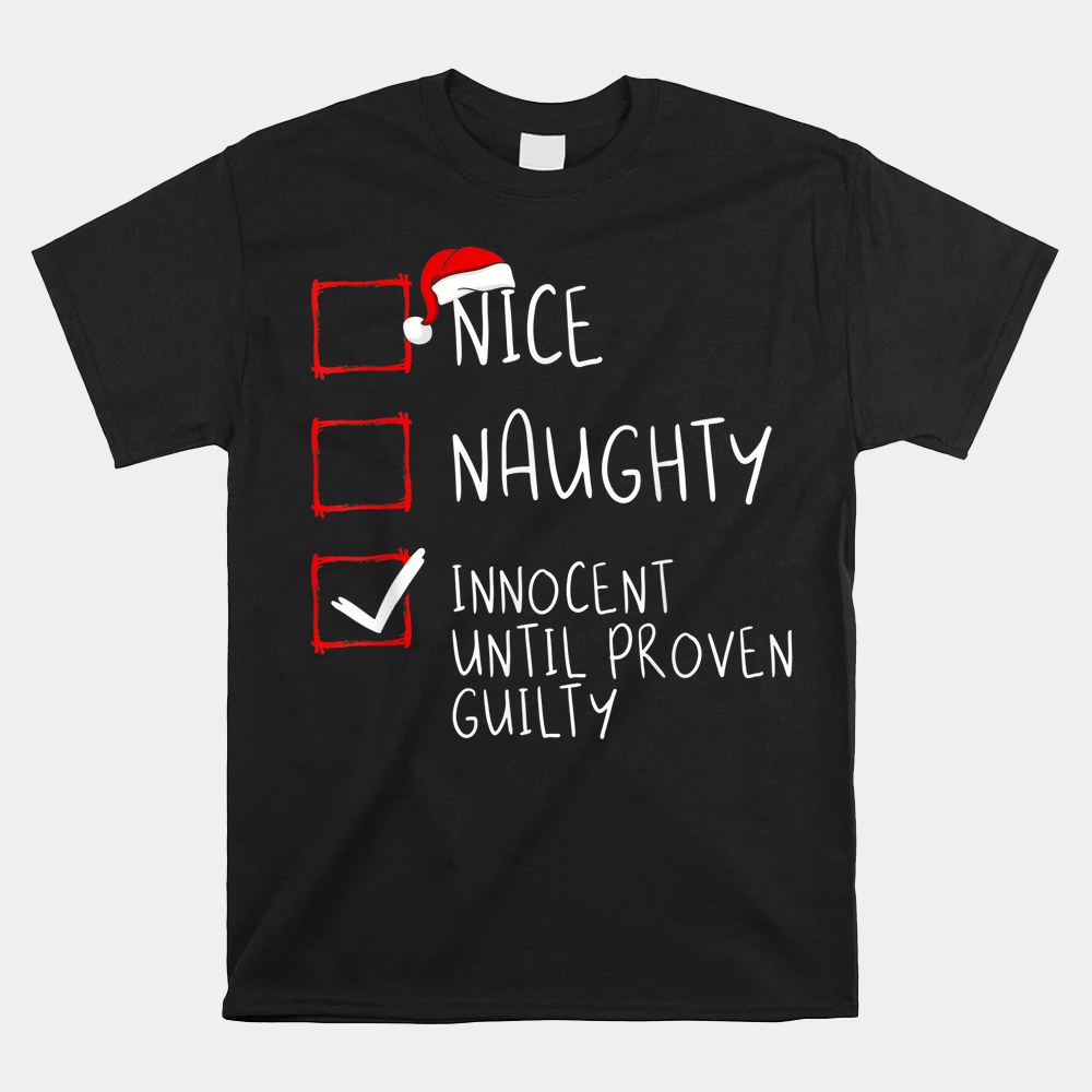 Nice Naughty Innocent Until Proven Guilty Christmas List Shirt, hoodie, sweatshirt, long sleeve and ladies T-shirt