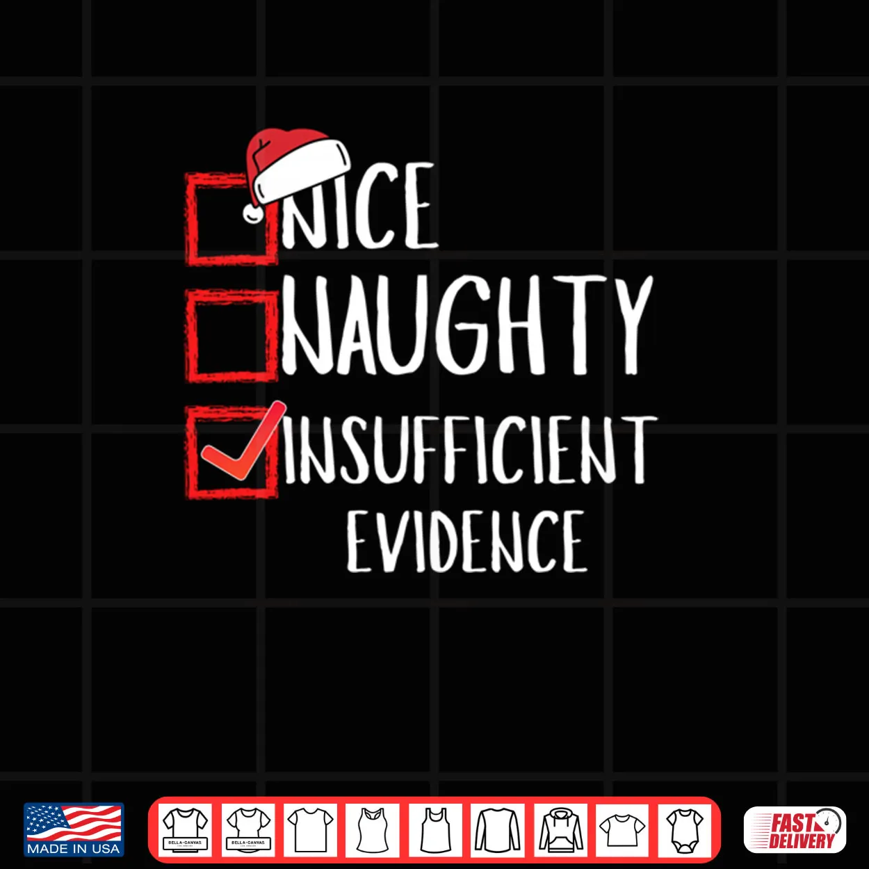 Nice Naughty Insufficient Evidence Christmas List Santa Xmas Shirt
