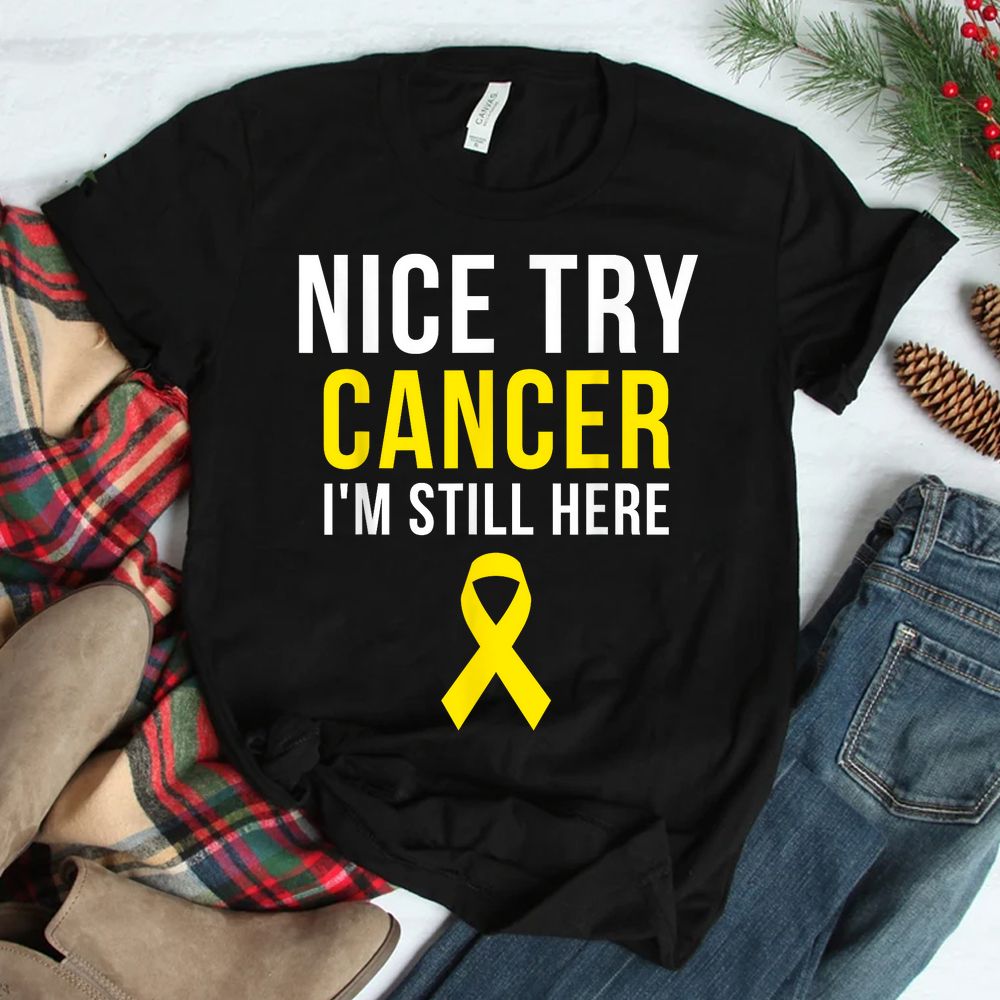 Nice Try Survivor Sarcoma Cancer Awareness Yellow Ribbon Shirt