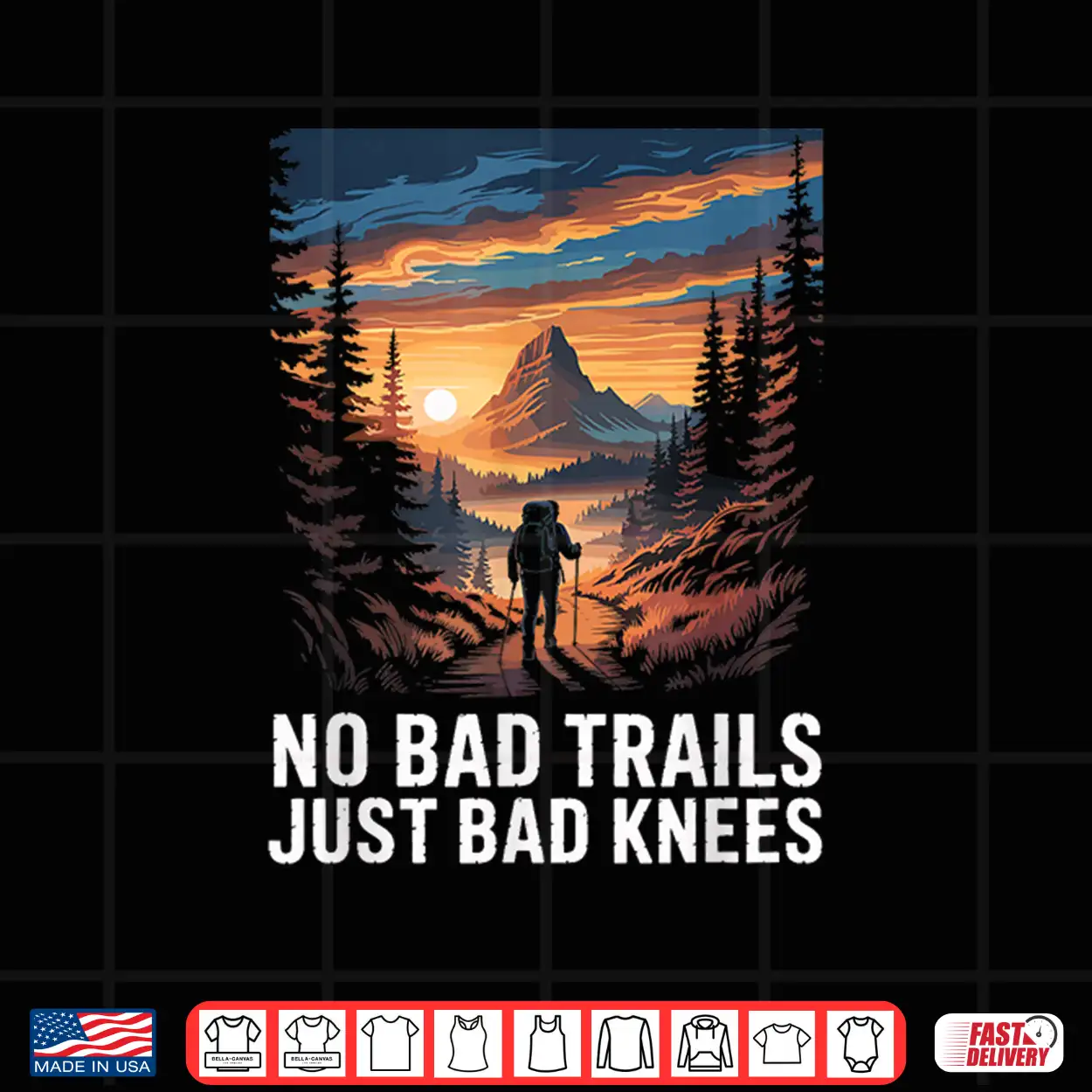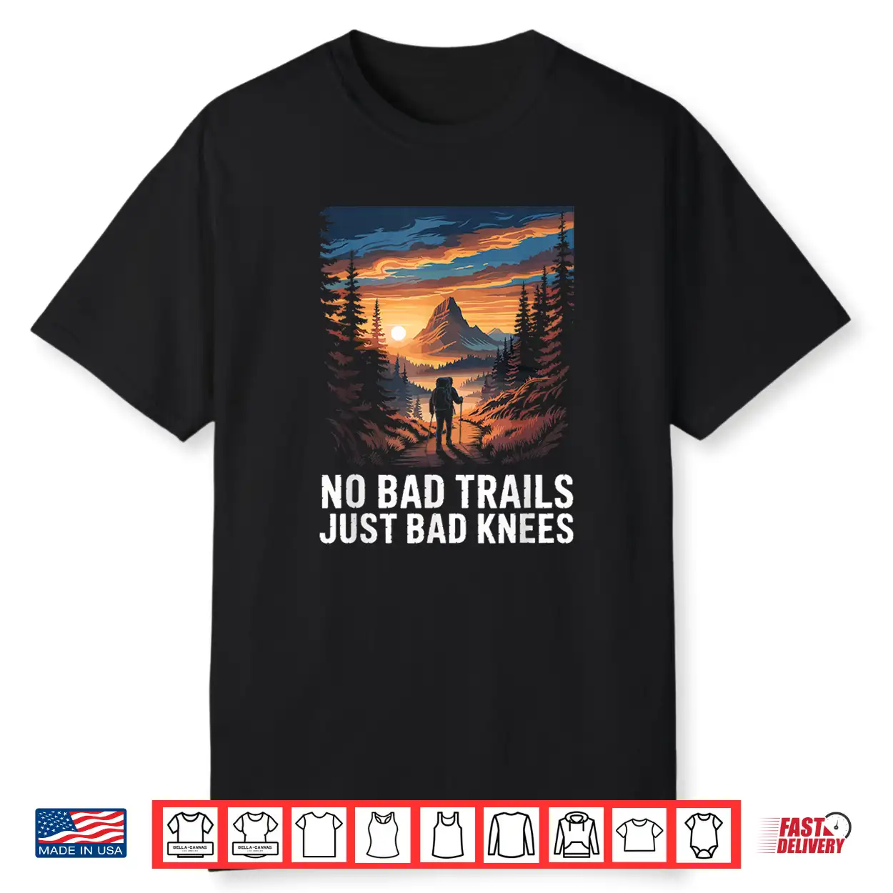 No Bad Trails Just Bad Knees Hiking Hiker Trekking Hike Shirt