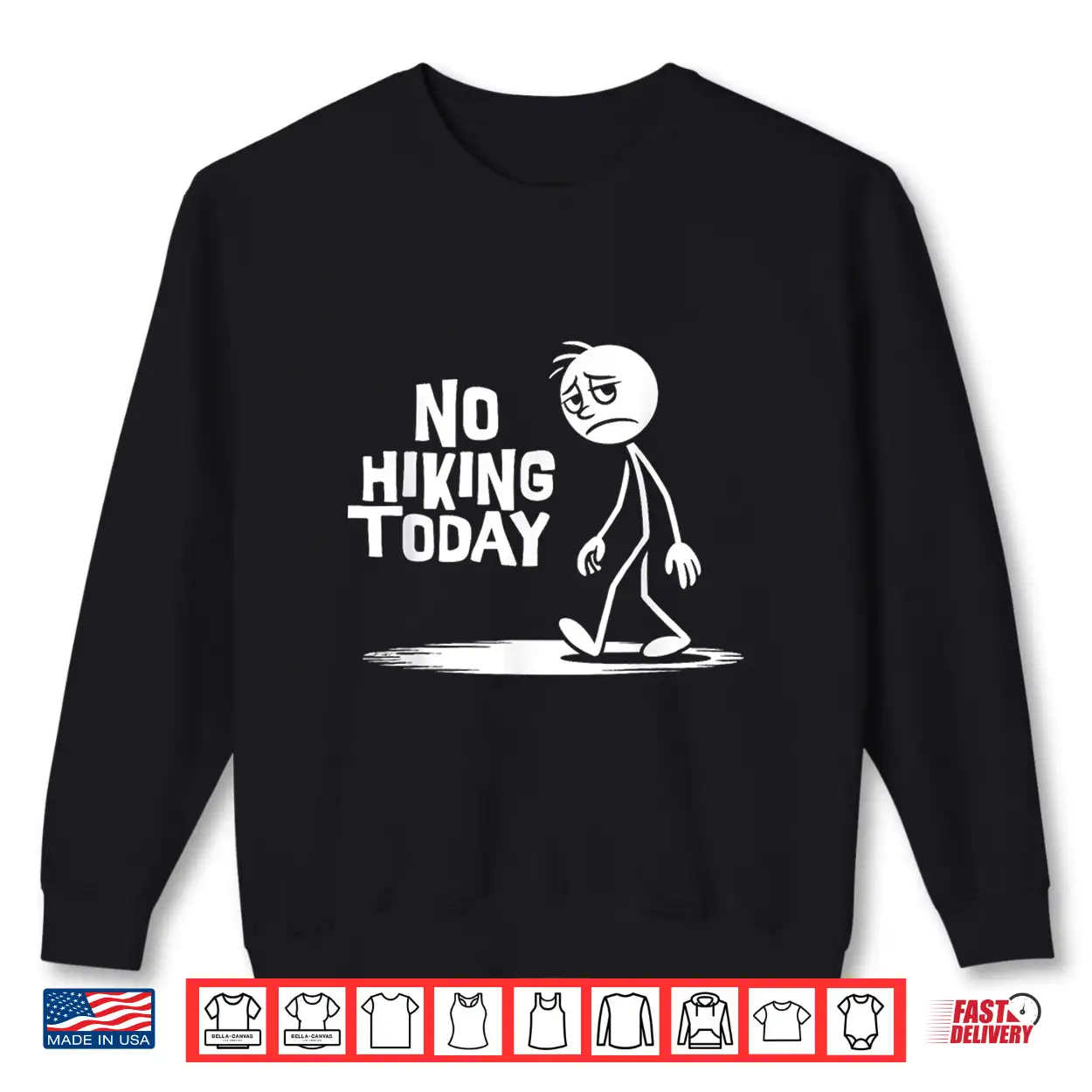 No Hiking Today Funny Sad Stick Man Climbing Hikers Joke Shirt