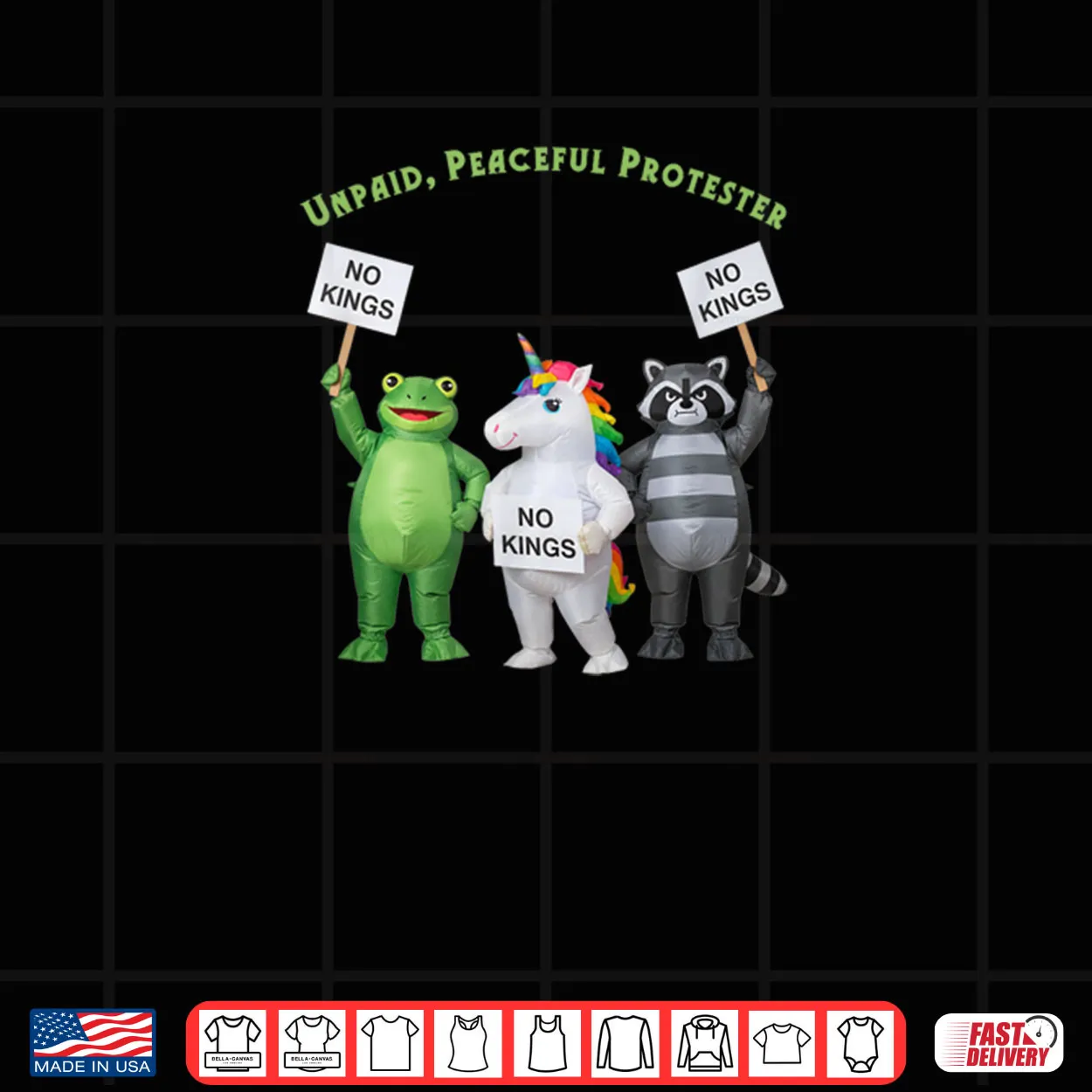 No Kings Unpaid Peaceful Protester Frog and Unicorn Shirt, No Kings, Unpaid Protester, Frog, Unicorn, Political, Funny, Meme, Protest