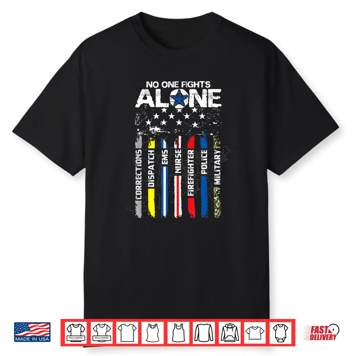 No One Fights Alone Usa Flag Thin Line Military Police Nurse Shirt