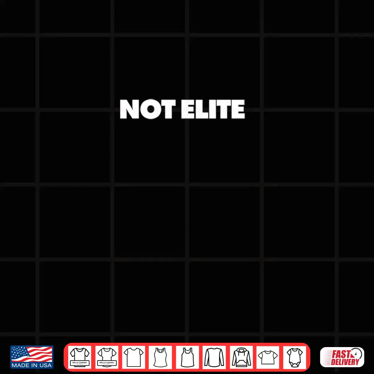 not elite, sarcastic, anti-hype, humorous, bold statement, sports satire, personality, witty, minimalist, shirt