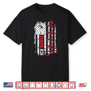 Nurse American Flag Heartbeat Shirt For Icu Nurses
