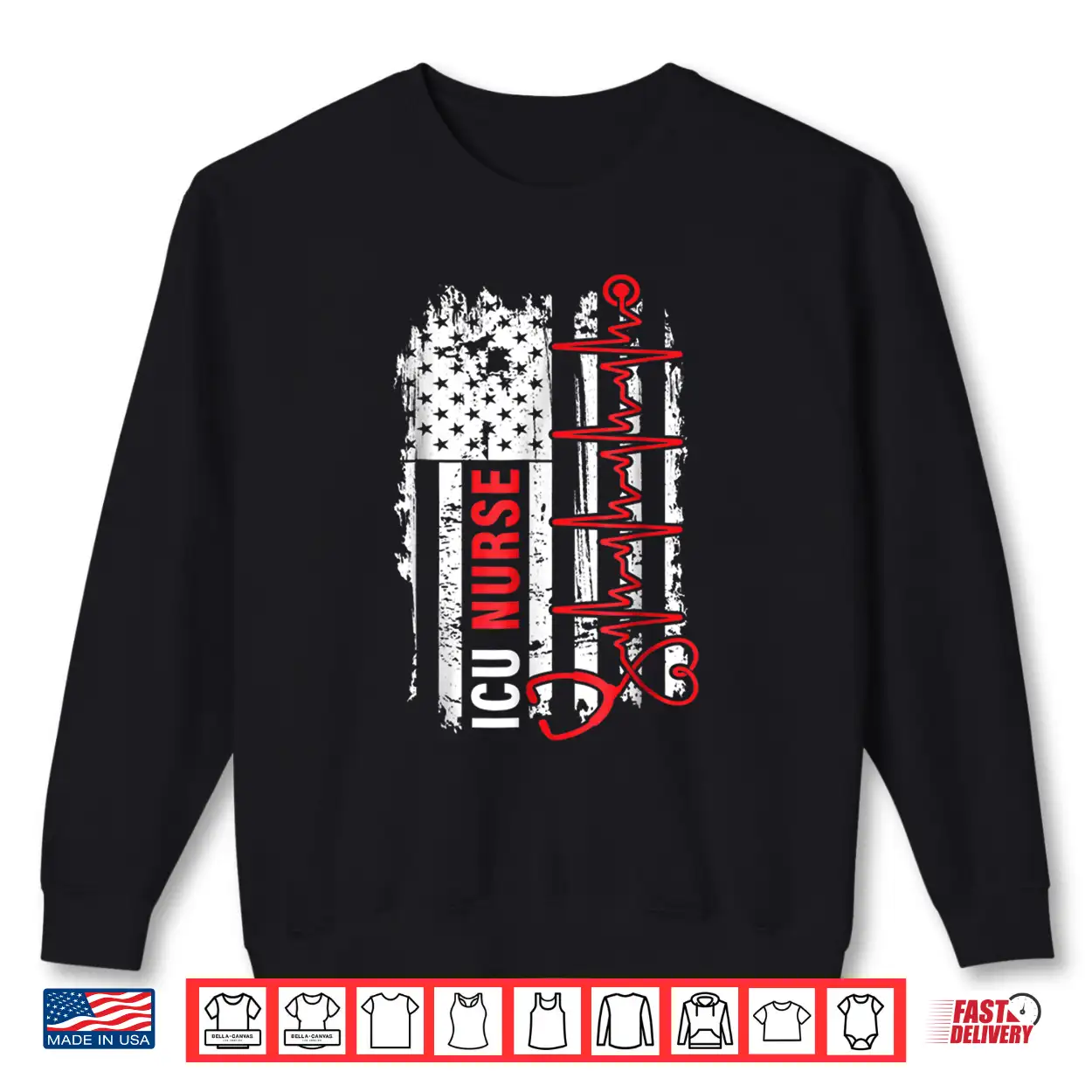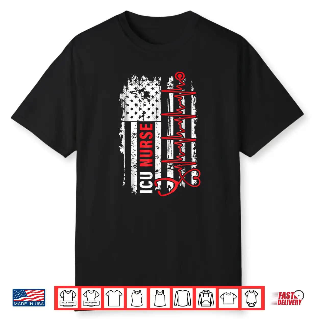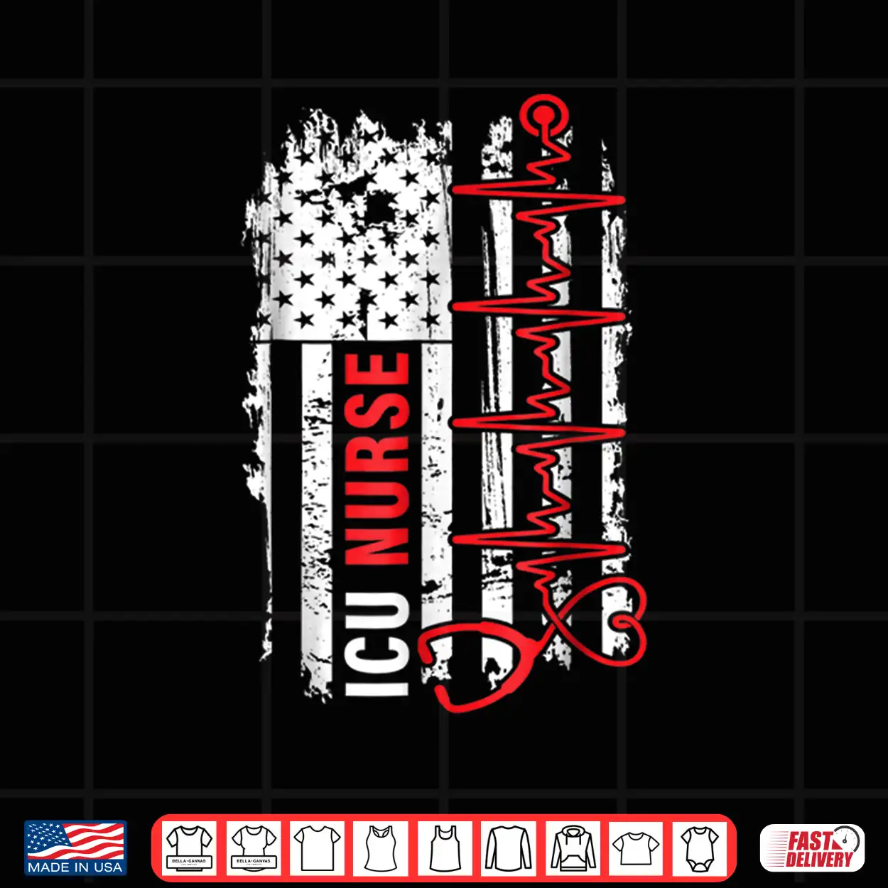 Nurse American Flag, Pulse, ICU Nurses, USA, Clinical, Healthcare, Heartbeat, Nursing, Patriot, Medical