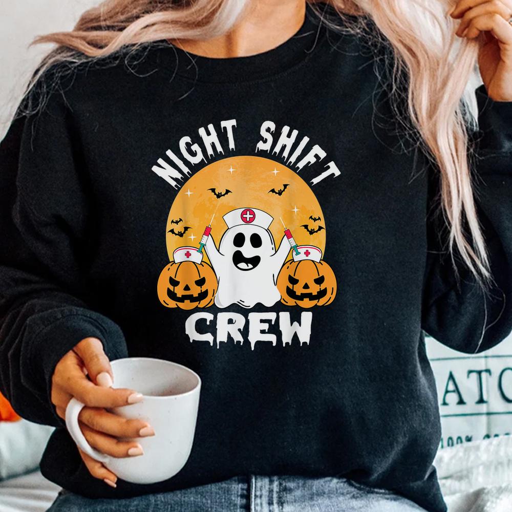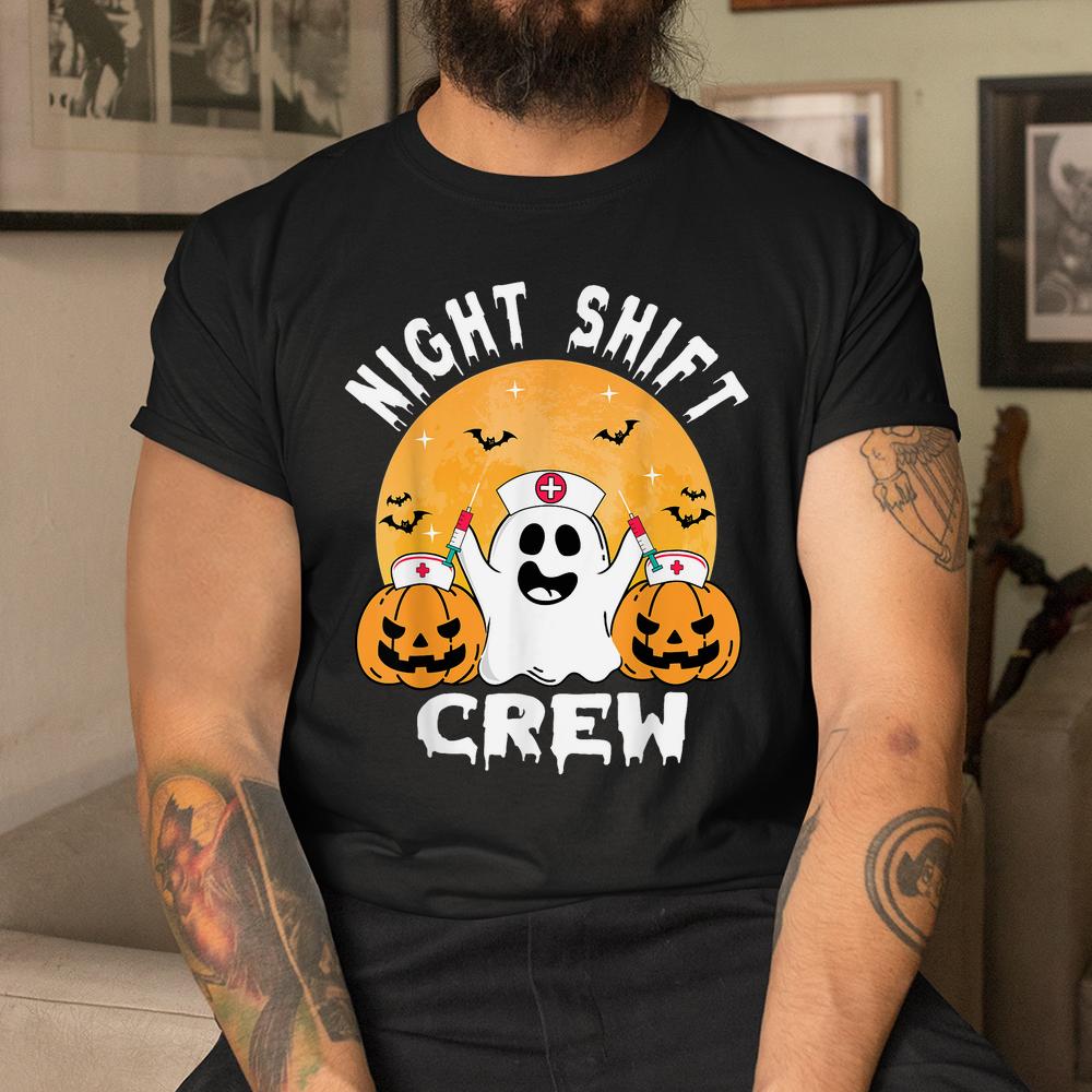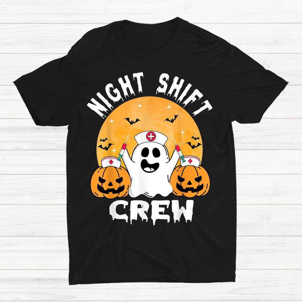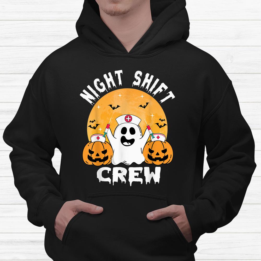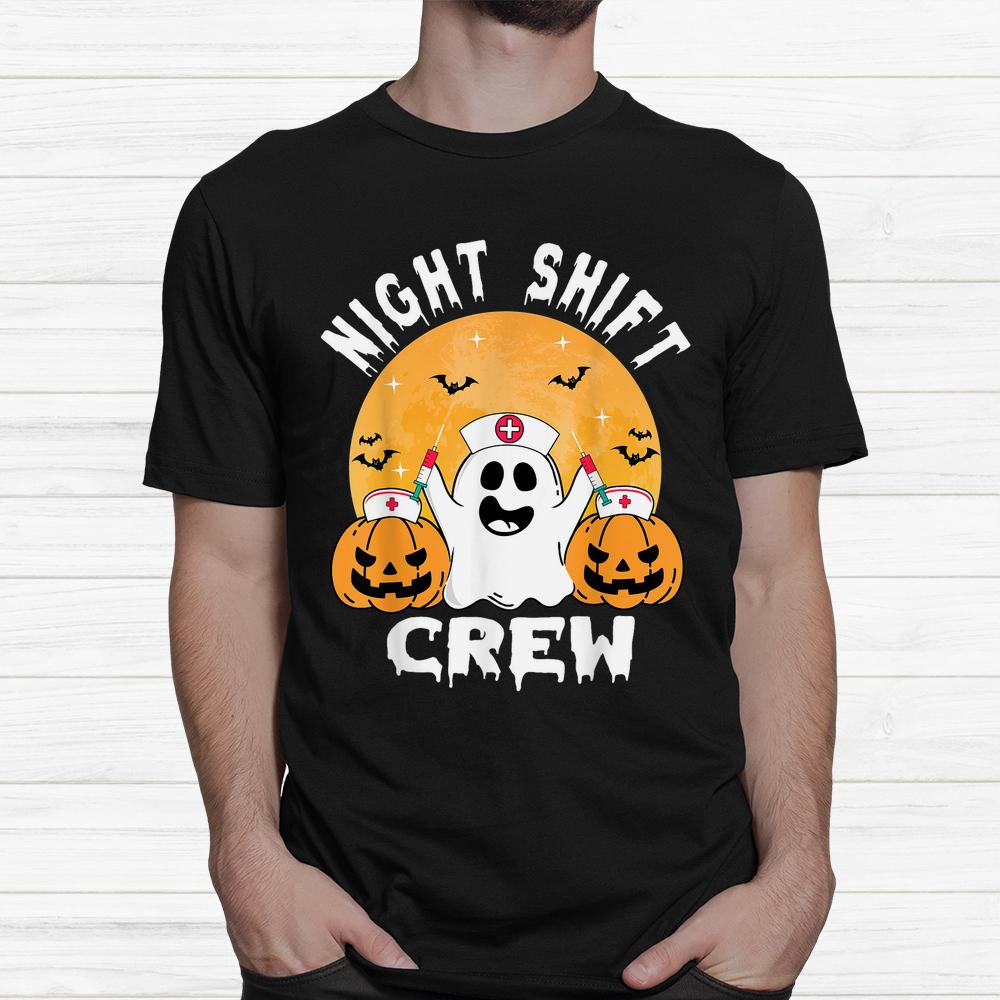 Nurse Night Shift Crew Ghost Pumpkin Halloween Nurse Scrubs Shirt, hoodie, sweatshirt, long sleeve and ladies T-shirt