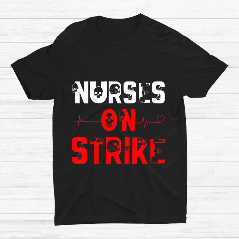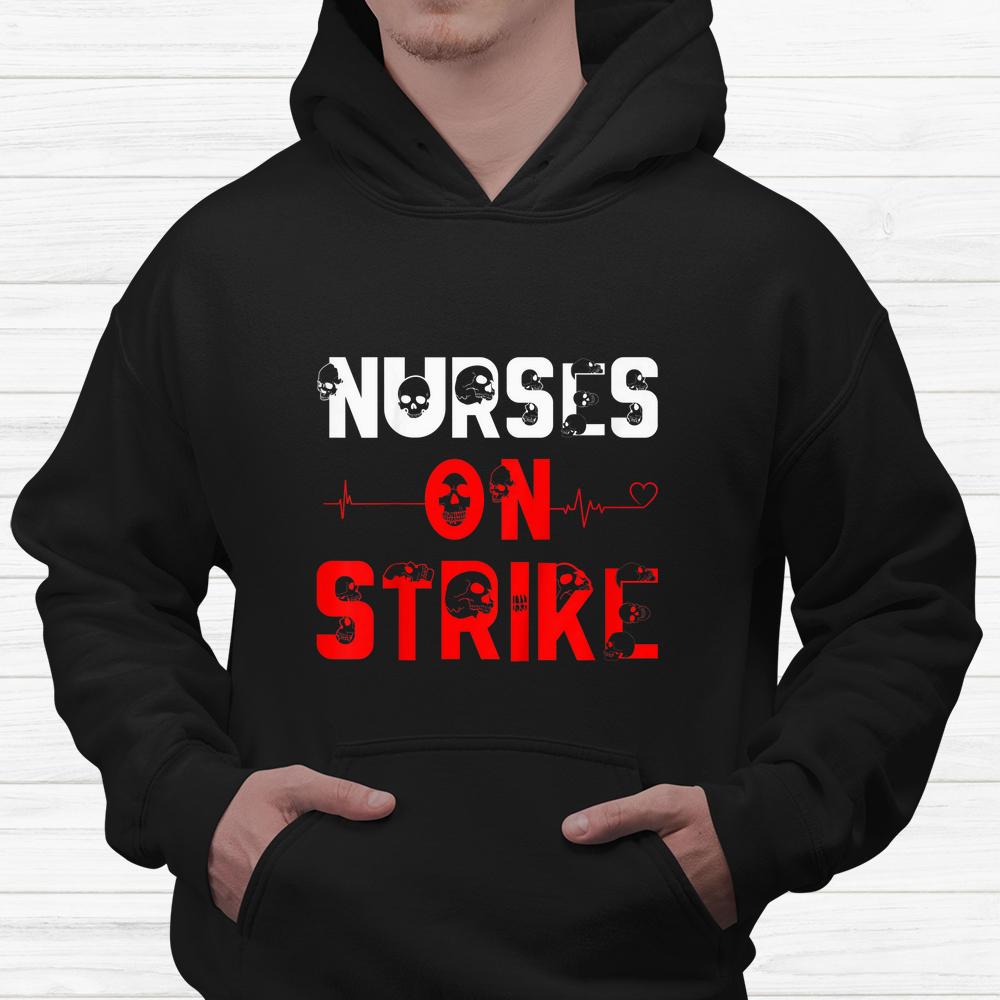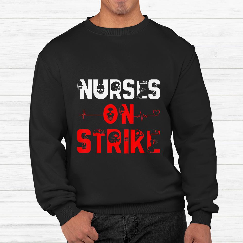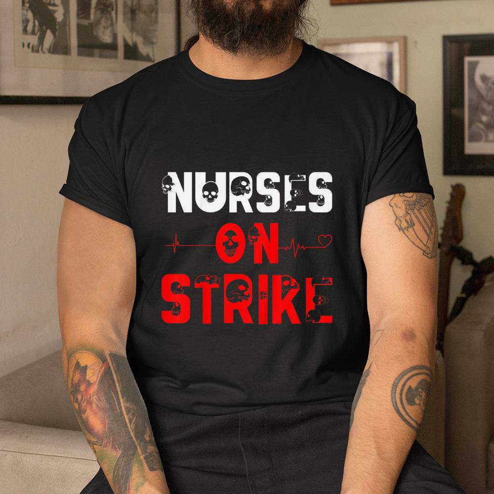 Nurse On Strike Nurses Rights Skull Heartbeat Halloween Shirt, hoodie, sweatshirt, long sleeve and ladies T-shirt