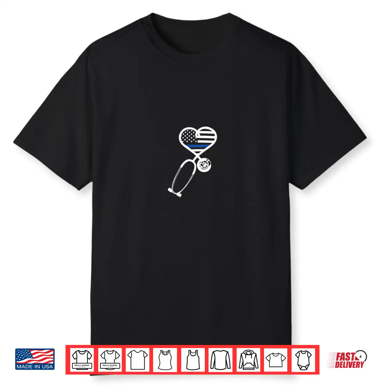 Nurse Police Spouse Officer Thin Blue Line Heart Flag Shirt
