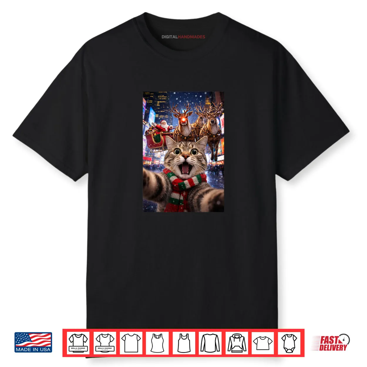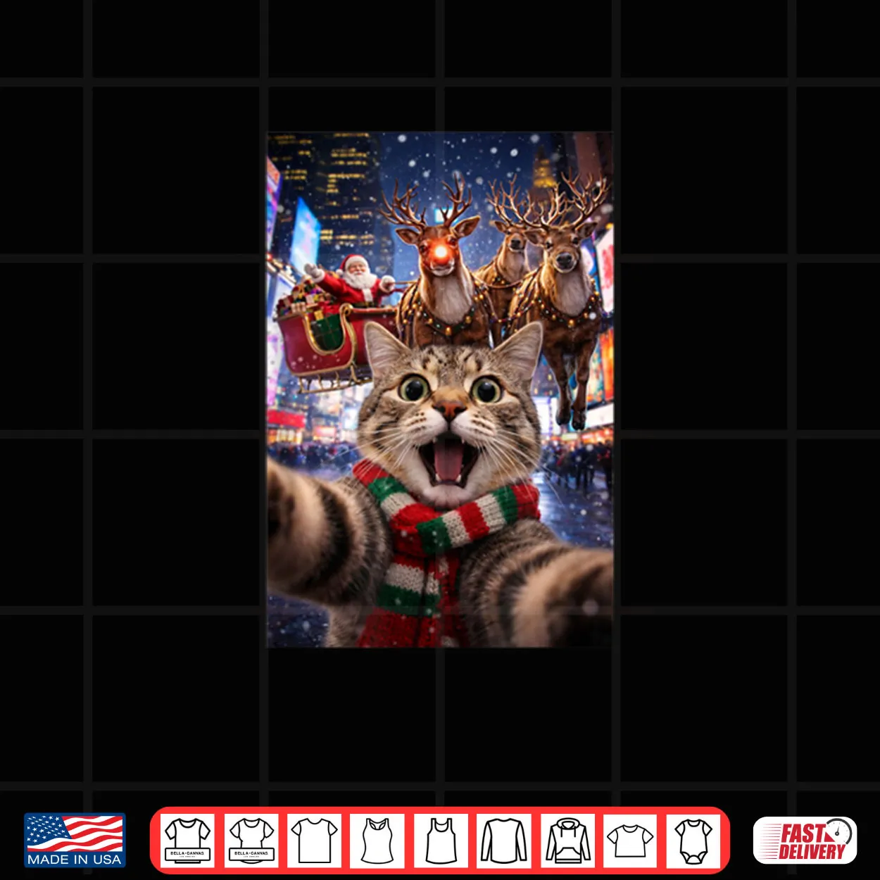 nyc cat, selfie, santa claus, rudolph, christmas, holiday, xmas, feline, new york, shirt