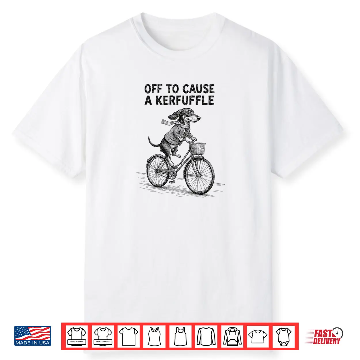 Off to Cause A Kerfuffle, Dachshund Cute, Wiener Dog, Doxie, Mischievous, Animal Humor, Pet Lover, Sarcastic, Funny Quote, shirt