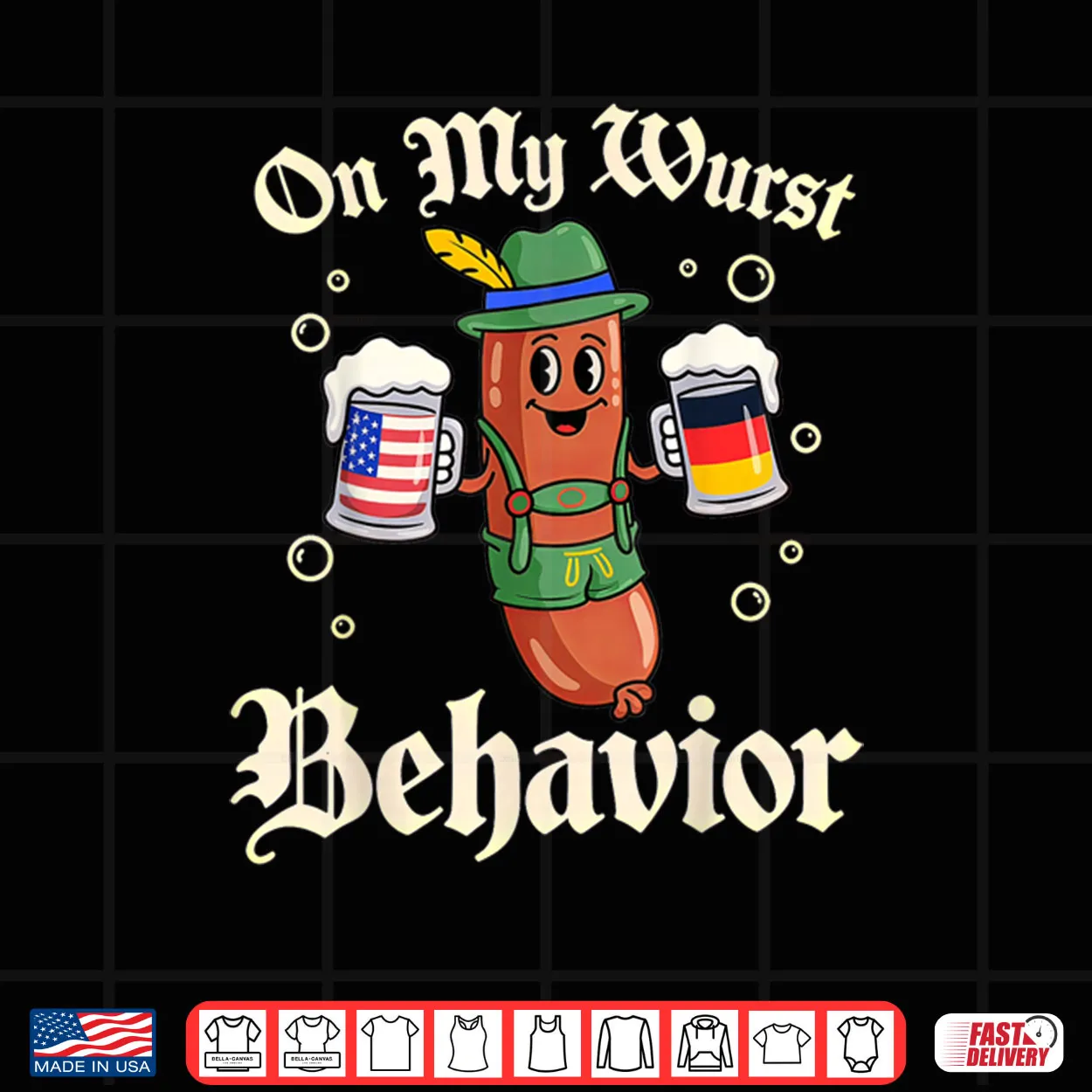 Oktoberfest, On My Wurst Behavior, Funny, Witty, Humor, Pun, Quote, Statement, German, Beer