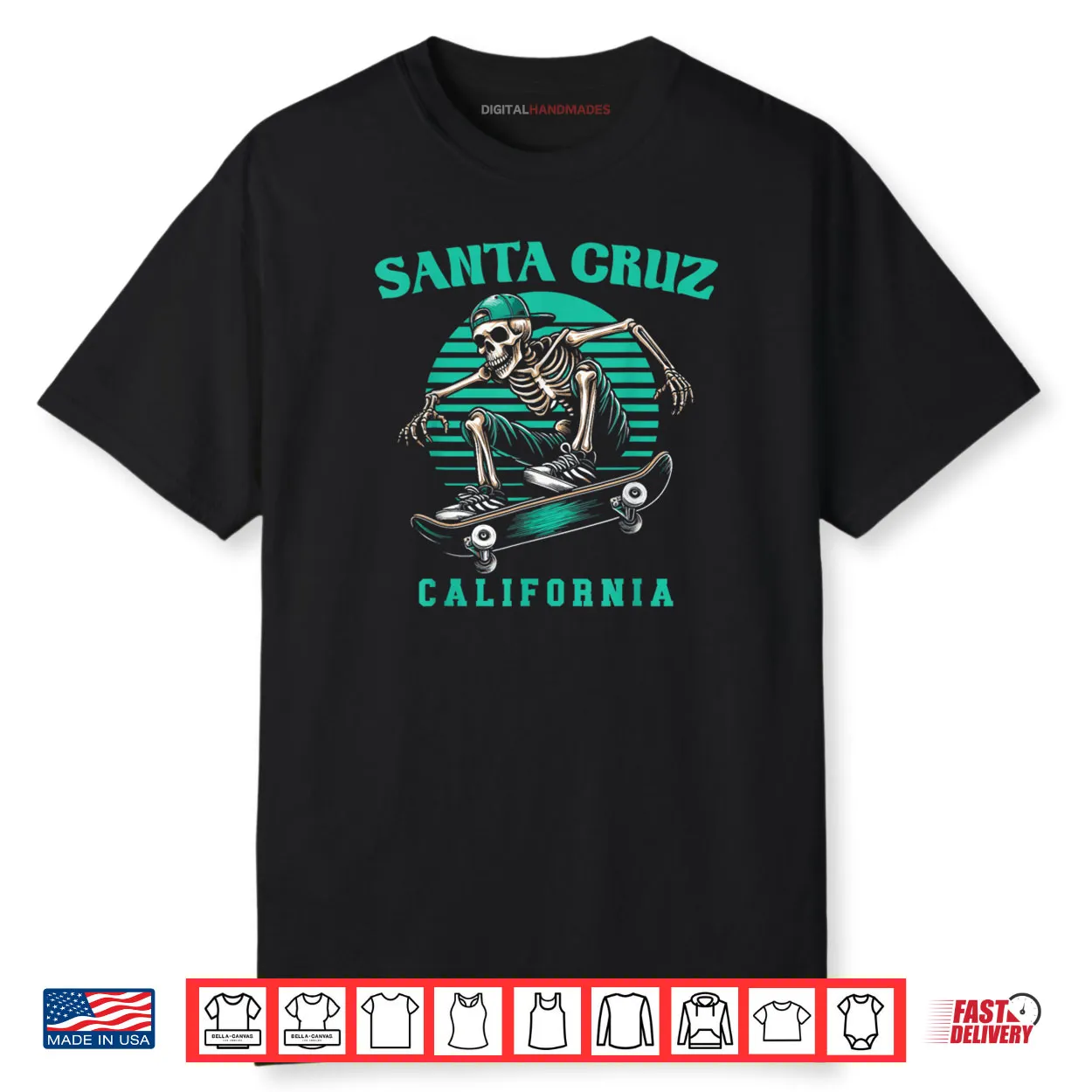 Old School Santa Cruz California Skeleton Skating Shirt