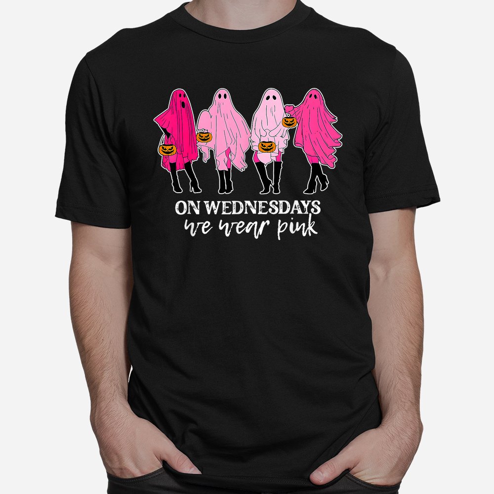 On Wednesday We Were Pink Ghost Breast Cancer Halloween Shirt, hoodie, sweatshirt, long sleeve and ladies T-shirt
