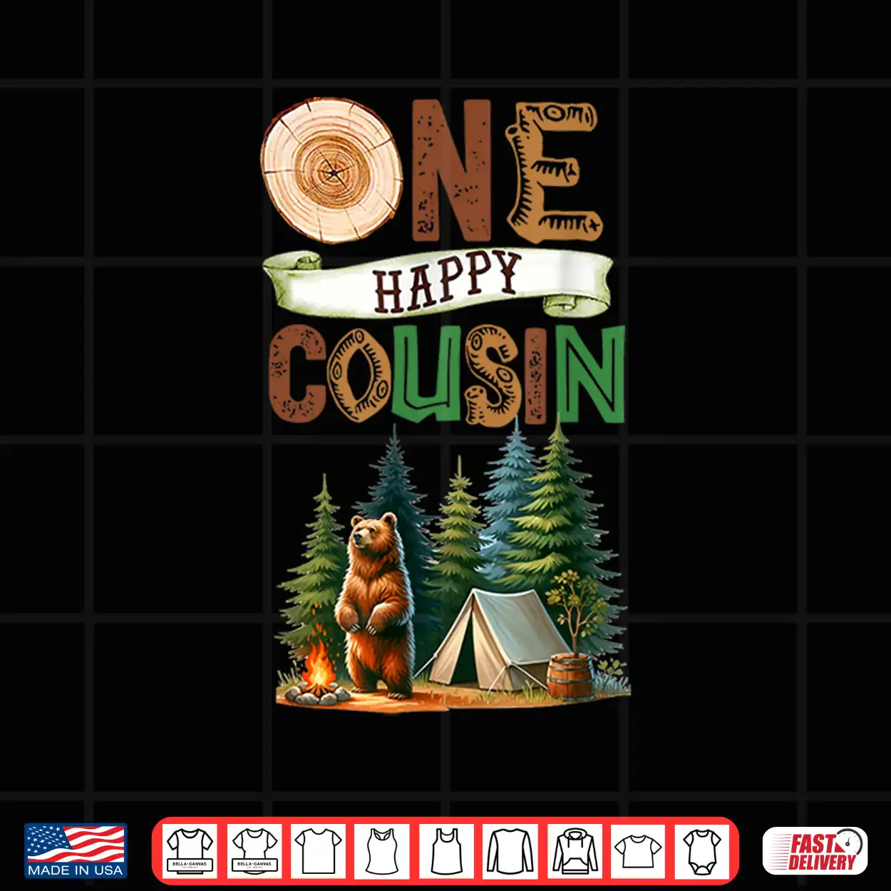 One Happy Cousin Camper First Birthday Camping Bear Kids Shirt