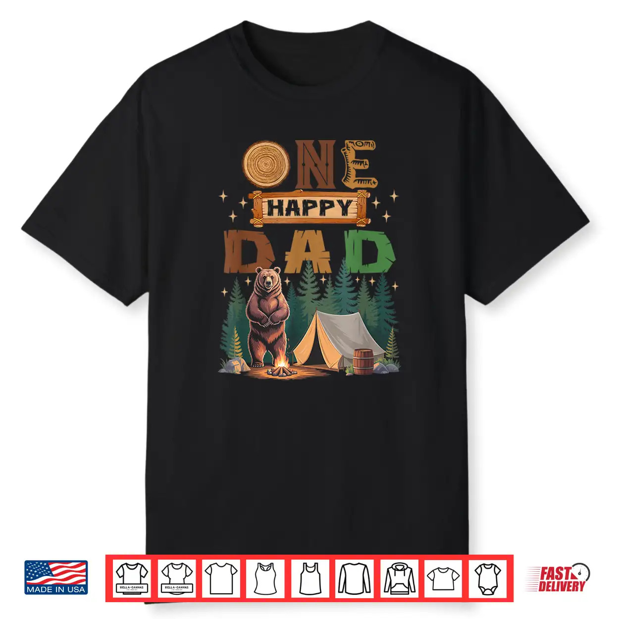 One Happy Dad Camper 1St Birthday Camping Bear Shirt