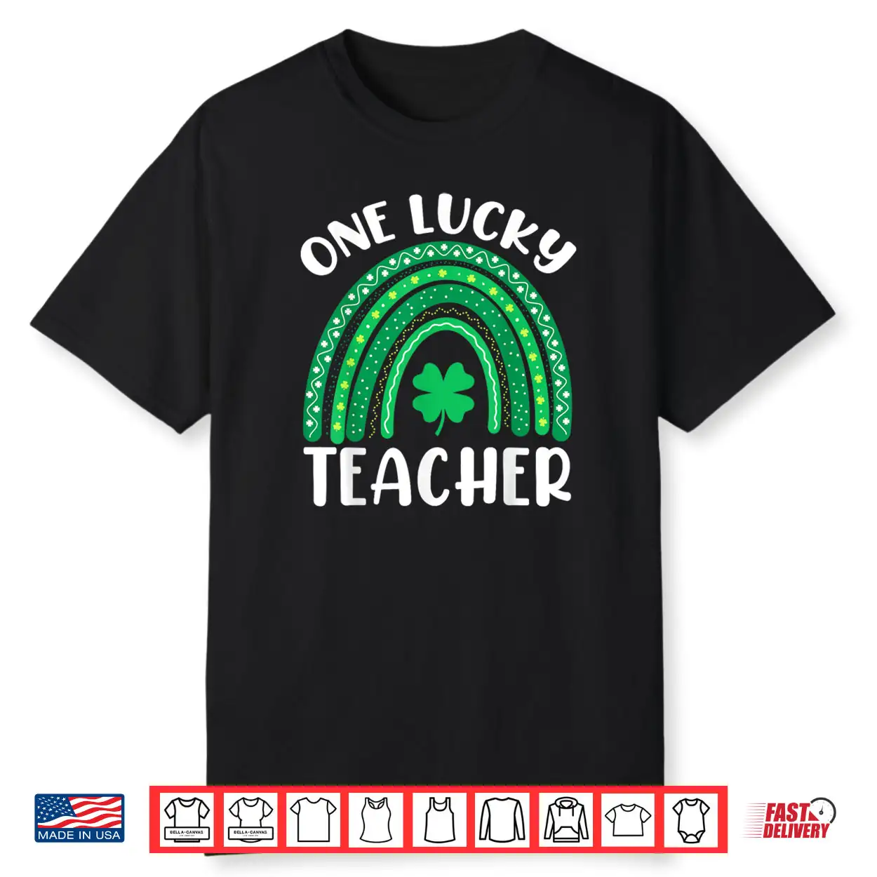One Lucky Teacher Rainbow Shamrock St Patricks Day Irish Shirt